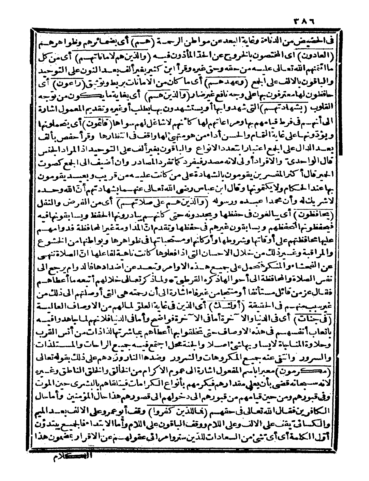 في الحضيض من الدناءة وغاية البعد عن مواطن الرحمة {هم} أي: بضمائرهم وظواهرهم {العادون} أي: المختصون بالخروج عن الحدّ المأذون فيه. {والذين هم لأماناتهم} أي: من كل ما ائتمنهم الله تعالى عليه من حقه وحق غيره، وقرأ ابن كثير بغير ألف بعد النون على التوحيد، والباقون بالألف على الجمع {وعهدهم} أي: ما كان من الأمانات بربط وتوثيق {راعون} أي: حافظون لها معترفون بها على وجه نافع غير ضار.
