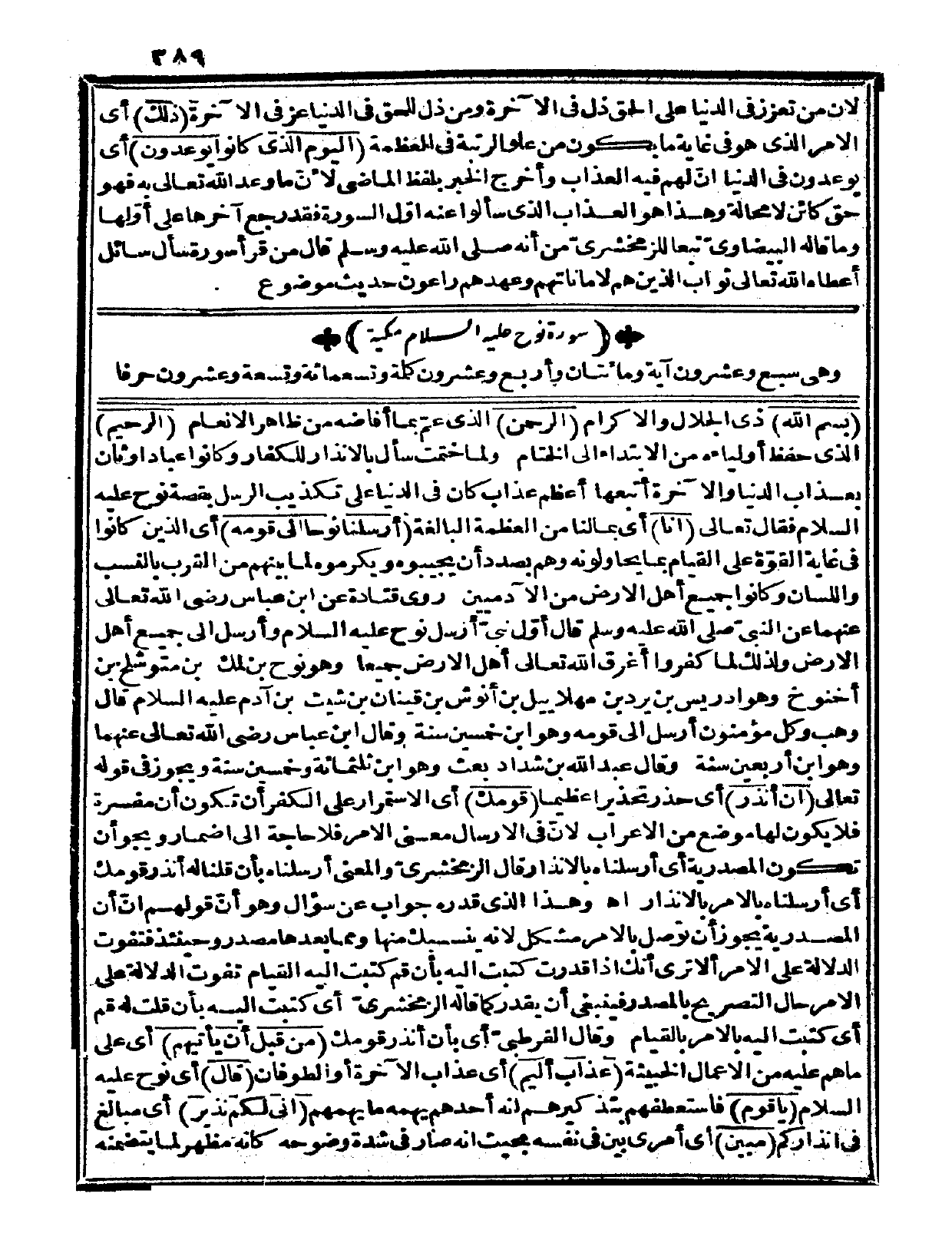 ولما ختمت سأل بالإنذار للكفار وكانوا عباد أوثان بعذاب الدنيا والآخرة أتبعها أعظم عذاب كان في الدنيا على تكذيب الرسل بقصة نوح عليه السلام فقال تعالى: