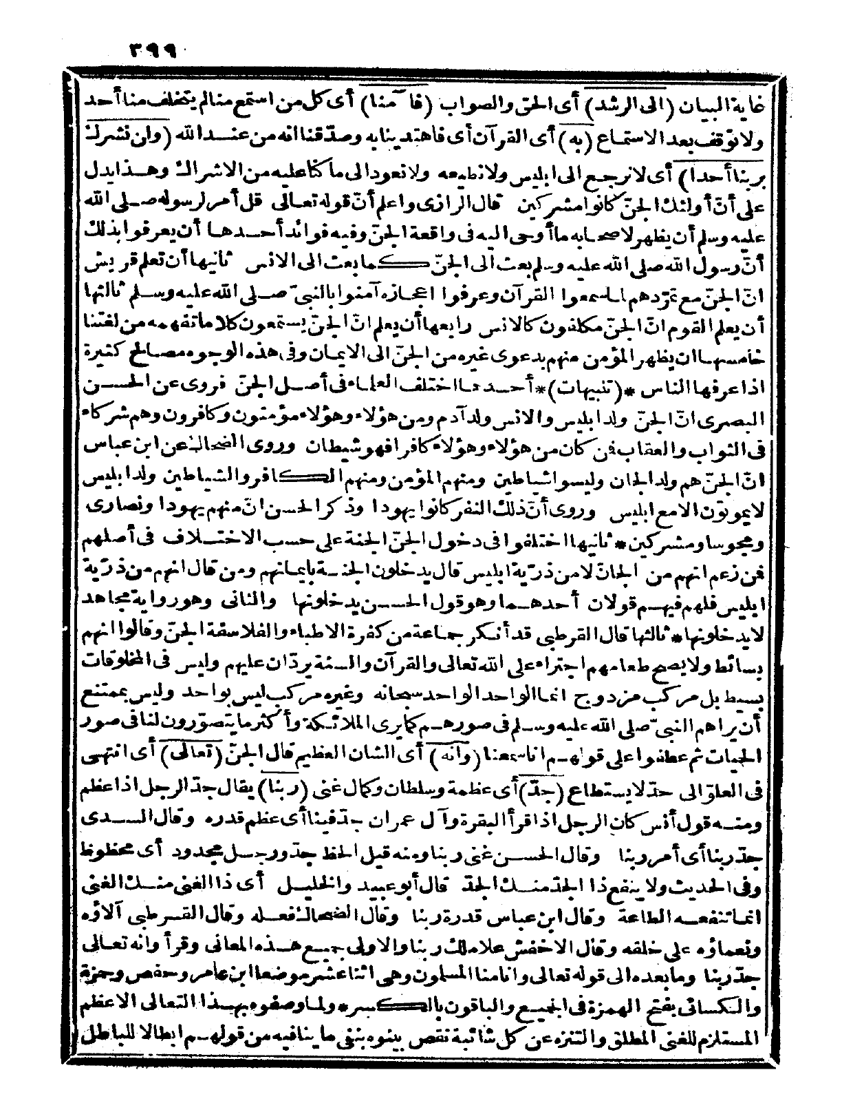 أحدها: اختلف العلماء في أصل الجنّ فروي عن الحس البصري أنّ الجنّ ولد إبليس والإنس ولد آدم، ومن هؤلاء وهؤلاء مؤمنون وكافرون، وهم شركاء في الثواب والعقاب، فمن كان من هؤلاء وهؤلاء كافراً فهو شيطان. وروى الضحاك عن ابن عباس أنّ الجنّ هم ولد الجان وليسوا شياطين ومنهم المؤمن ومنهم الكافر، والشياطين ولد إبليس لا يموتون إلا مع إبليس. وروي أنّ ذلك النفر كانوا يهوداً. وذكر الحسن أنّ منهم يهوداً ونصارى ومجوساً ومشركين.