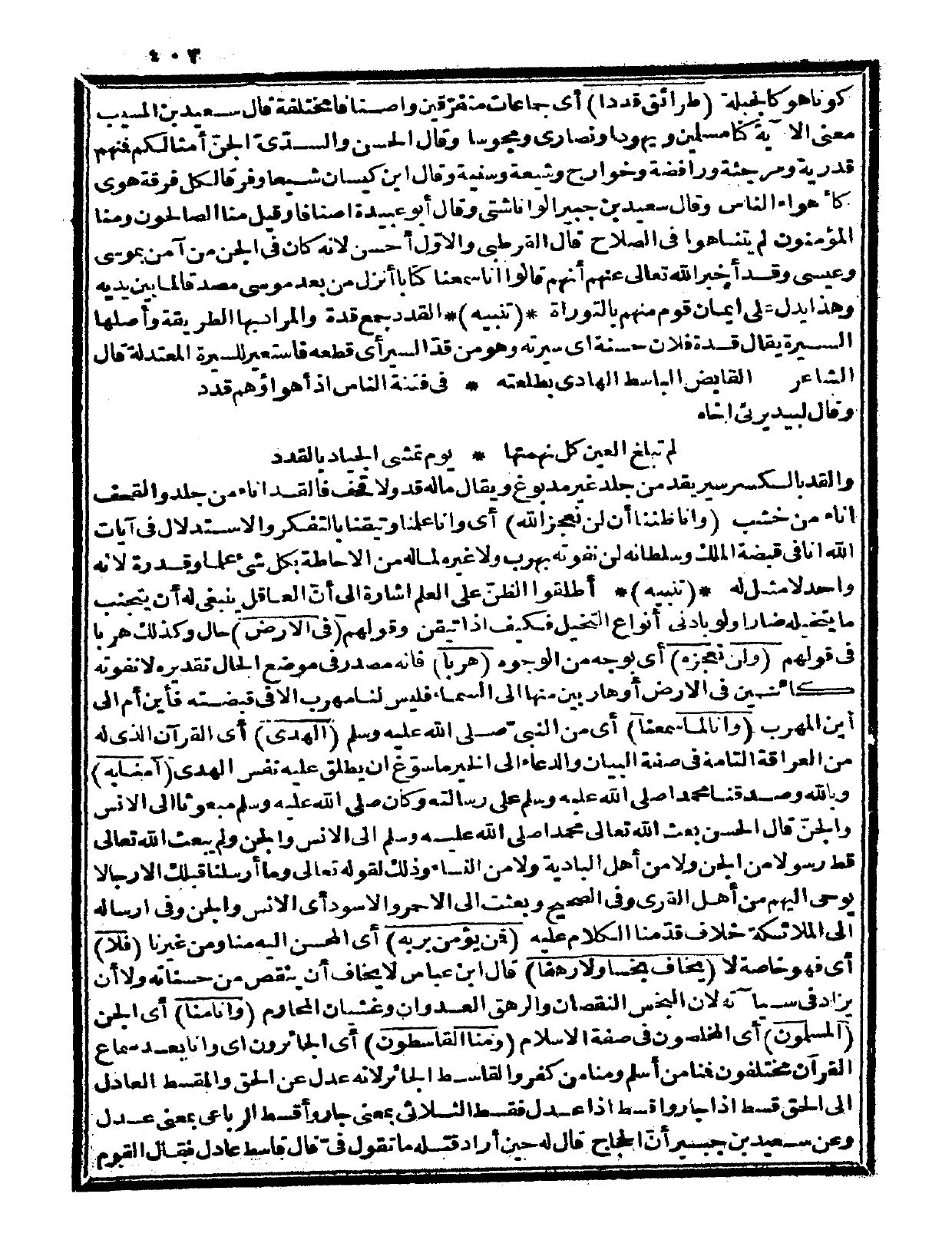 قال القرطبي: والأوّل أحسن لأنه كان في الجنّ من آمن بموسى وعيسى، وقد أخبر الله تعالى عنهم أنهم قالوا: {إنا سمعنا كتاباً أنزل من بعد موسى مصدقاً لما بين يديه} وهذا يدل على إيمان قوم منهم بالتوراة.