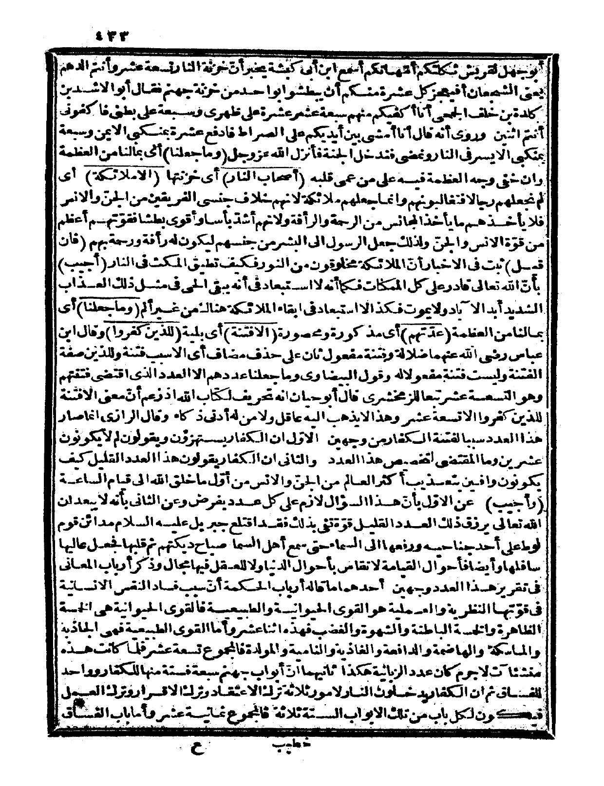 وقال الرازي: إنما صار هذا العدد سبباً لفتنة الكفار من وجهين: الأوّل: أنّ الكفار يستهزئون ويقولون لم لا يكونون عشرين، وما المقتضي لتخصيص هذا العدد. والثاني: أن الكفار يقولون هذا العدد القليل كيف يكونون وافين بتعذيب أكثر العالم من الجنّ والإنس من أوّل ما خلق الله إلى قيام الساعة؟