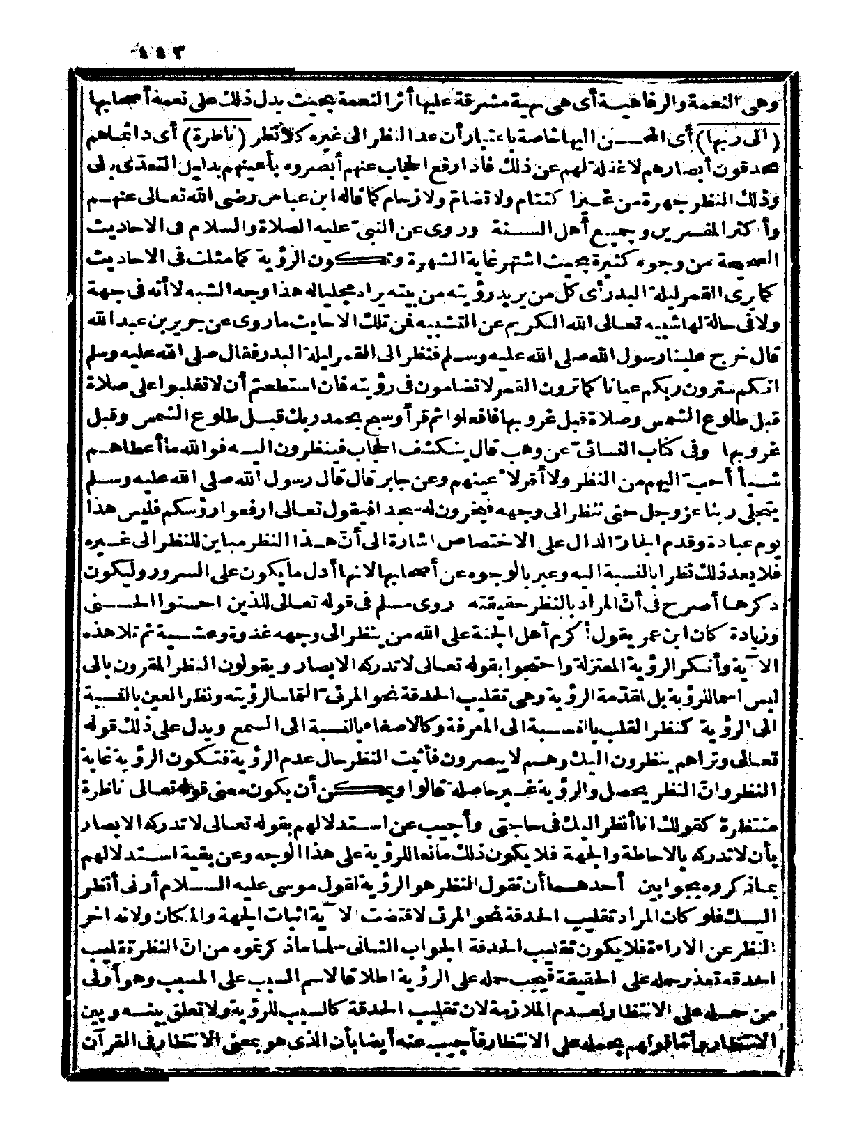 وفي كتاب النسائي عن وهب قال: «ينكشف الحجاب فينظرون إليه، فوالله ما أعطاهم شيئاً أحبّ إليهم من النظر ولا أقر لأعينهم» .