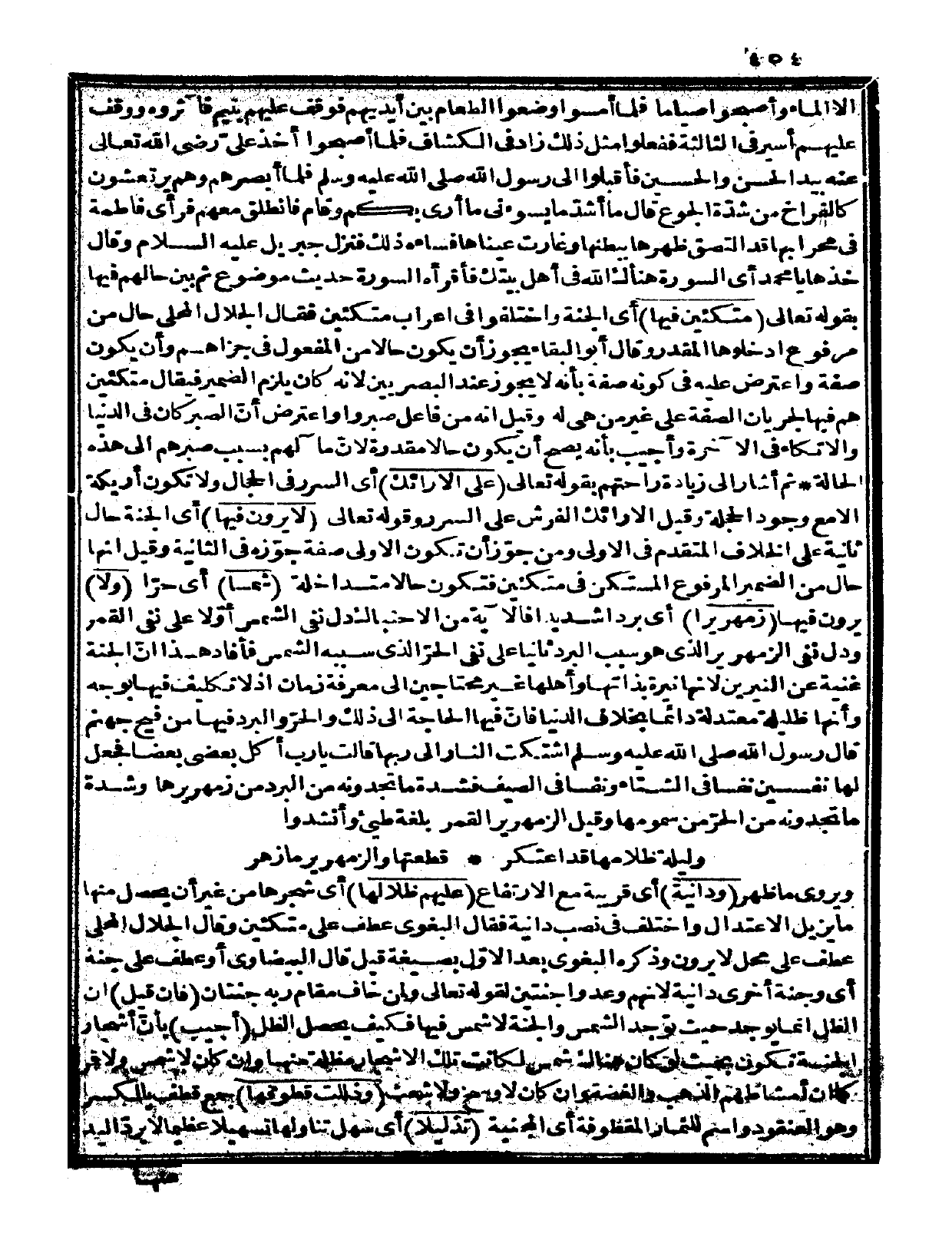 إلا الماء وأصبحوا صياماً، فلما أمسوا وضعوا الطعام بين أيديهم فوقف عليهم يتيم فآثروه، ووقف عليهم أسير في الثالثة، ففعلوا مثل ذلك زاد في الكشاف فلما أصبحوا أخذ عليّ رضي الله تعالى عنه بيد الحسن والحسين فأقبلوا إلى رسول الله صلى الله عليه وسلم فلما أبصرهم وهم يرتعشون كالفراخ من شدّة الجوع، قال: ما أشدّ ما يسوءني ما أرى بكم وقام فانطلق معهم فرأى فاطمة في محرابها قد التصق ظهرها ببطنها وغارت عيناها فساءه ذلك فنزل جبريل عليه السلام وقال: خذها يا محمد ـ أي: السورة ـ هنأك الله في أهل بيتك فأقرأه السورة حديث موضوع.