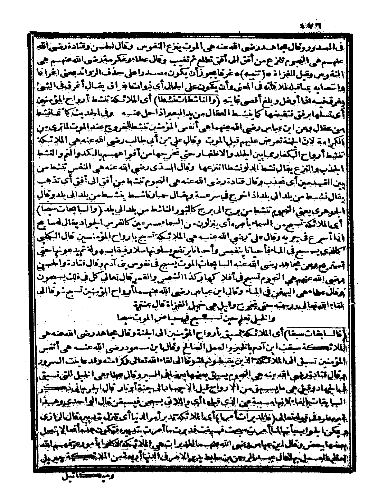 {والناشطات نشطاً} أي: الملائكة تنشط أرواح المؤمنين أي: تسلها برفق فتقبضها كما ينشط العقال من يد البعير إذا حل عنه.