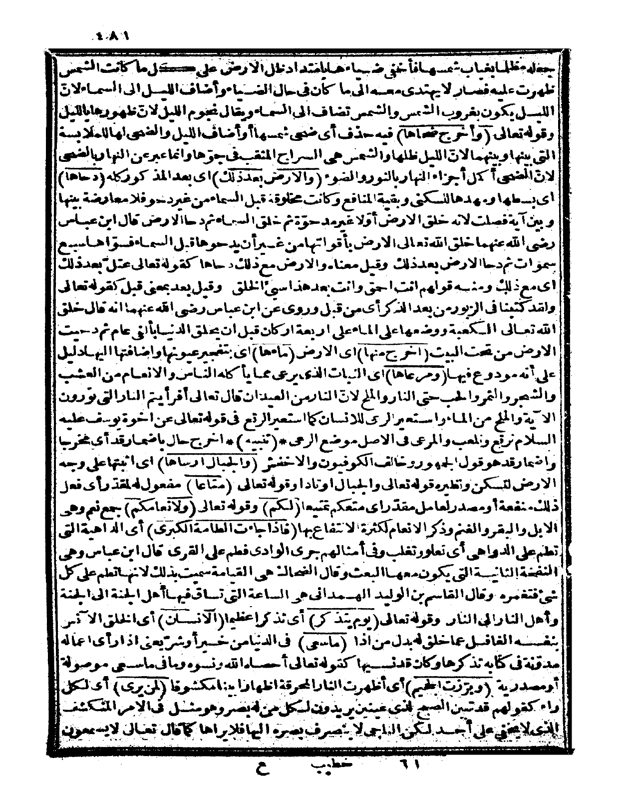 جعله مظلماً بغياب شمسها فأخفى ضياءها بامتداد ظل الأرض على كل ما كانت الشمس ظهرت عليه، فصار لا يهتدي معه إلى ما كان في حال الضياء، وأضاف الليل إلى السماء لأنّ الليل يكون بغروب الشمس والشمس تضاف إلى السماء. ويقال: نجوم الليل، لأنّ ظهورها بالليل.