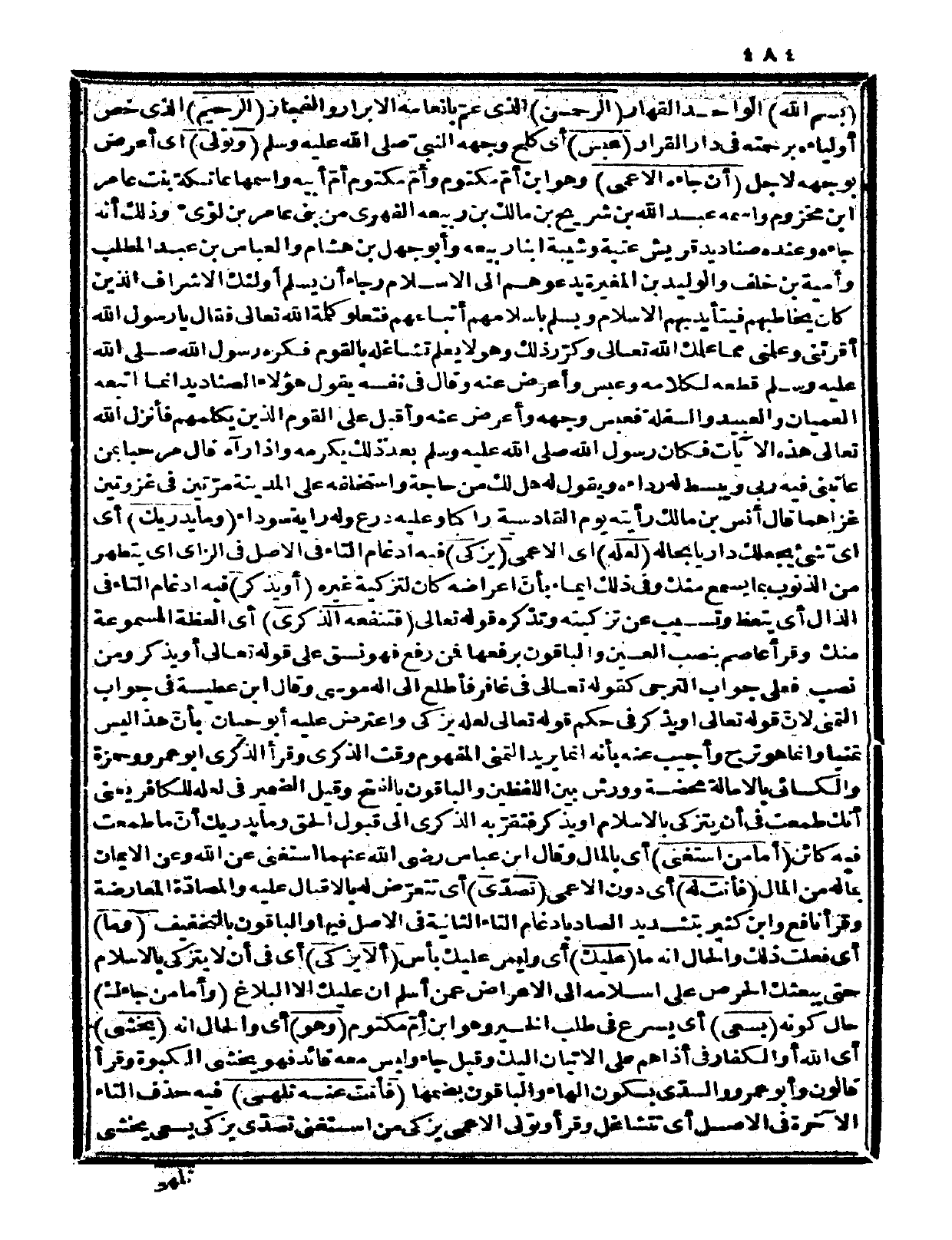 {عبس} أي: كلح وجهه النبي صلى الله عليه وسلم {وتولى} أي: أعرض بوجهه لأجل {أن جاءه الأعمى} وهو ابن أمّ مكتوم وأم مكتوم أمّ ابيه واسمها عاتكة بنت عامر بن مخزوم، واسمه عبد الله بن شريح بن مالك بن ربيعة الفهري من بني عامر بن لؤيّ، وذلك أنه جاءه وعنده صناديد قريش عتبة وشيبة ابنا ربيعة وأبو جهل بن هشام، والعباس بن عبد المطلب، وأمية ابن خلف، والوليد بن المغيرة يدعوهم إلى الإسلام رجاء أن يسلم أولئك الأشراف الذين كان يخاطبهم فيتأيد بهم الإسلام ويسلم بإسلامهم أتباعهم، فتعلو كلمة الله تعالى، فقال: يا رسول الله، أقرئني وعلمني مما علمك الله تعالى وكرّر ذلك وهو لا يعلم تشاغله بالقوم، فكره رسول الله صلى الله عليه وسلم قطعه لكلامه وعبس وأعرض عنه، وقال في نفسه: يقول هؤلاء الصناديد: إنما اتبعه العميان والعبيد والسفلة فعبس وجهه وأعرض عنه وأقبل على القوم الذين يكلمهم، فأنزل الله تعالى هذه الآيات فكان رسول الله صلى الله عليه وسلم بعد ذلك يكرمه، وإذا رآه قال: «مرحباً بمن عاتبني فيه ربي» ، ويبسط له رداءه ويقول له: «هل لك حاجة؟» واستخلفه على المدينة مرّتين في غزوتين غزاهما. قال أنس بن مالك: رأيته يوم القادسية راكباً وعليه درع وله راية سوداء. { {