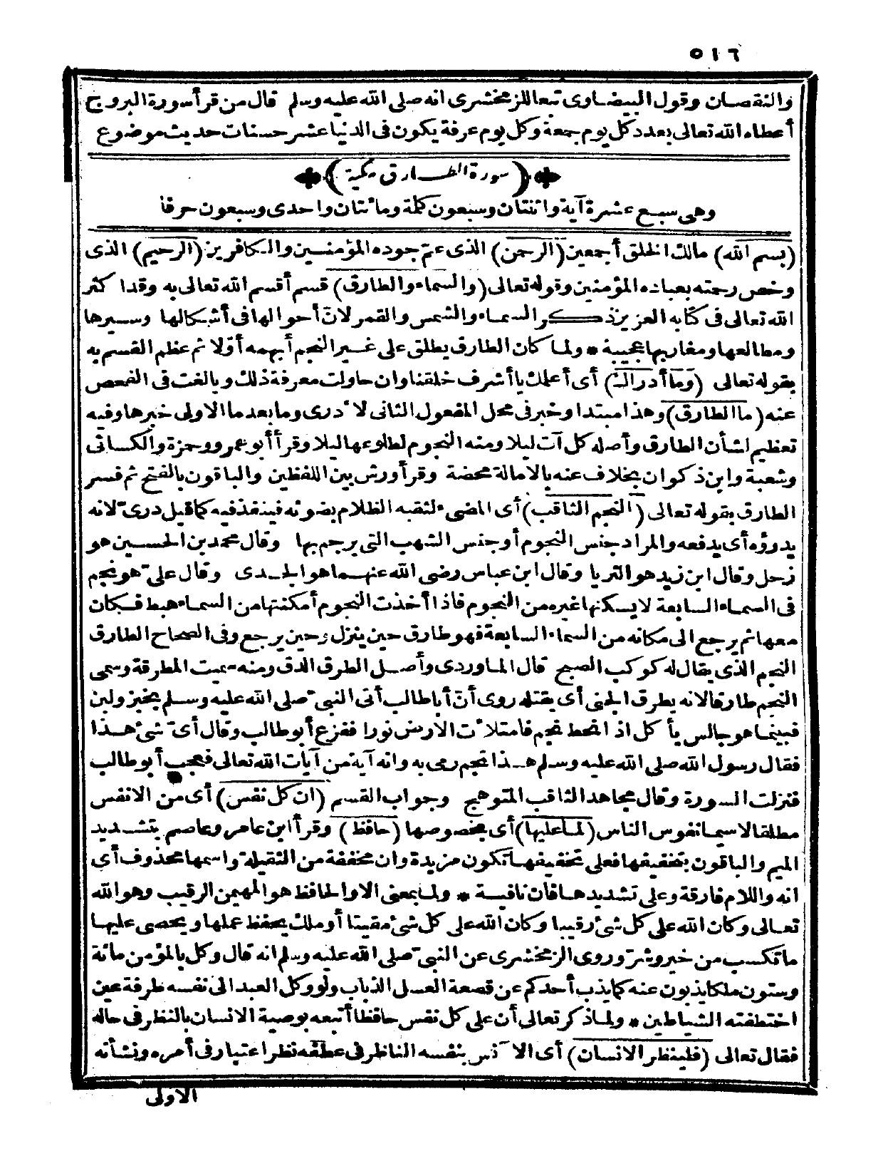 وقوله تعالى: {والسماء والطارق} قسم أقسم الله تعالى به، وقد أكثر الله تعالى في كتابه العزيز ذكر السماء والشمس والقمر؛ لأنّ أحوالها في أشكالها وسيرها ومطالعها ومغاربها عجيبة. ولما كان الطارق يطلق على غير النجم أبهمه أوّلاً، ثم عظم القسم به بقوله تعالى: