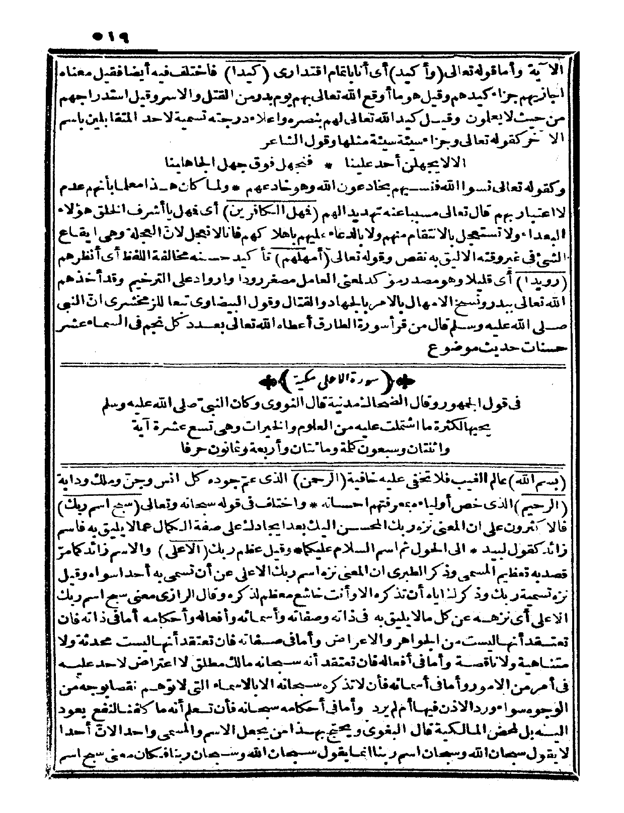 في قول الجمهور وقال الضحاك مدنية، قال النووي: وكان النبيّ صلى الله عليه وسلم يحيها لكثرة مااشتملت عليه من العلوم والخبرات، وهي تسع عشرة آية واثنتان وسبعون كلمة ومائتان وأربعة وثمانون حرفاً.