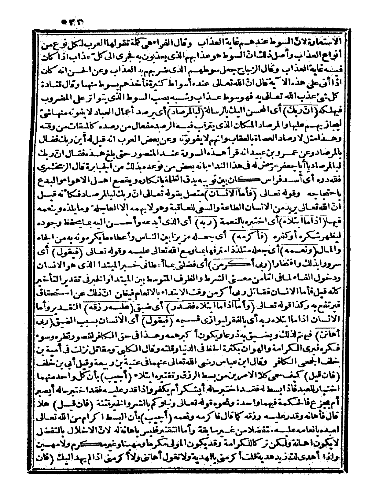 وكذا قوله تعالى: {وأما إذا ما ابتلاه فقدر} ، أي: ضيق {عليه رزقه} التقدير وأما الإنسان إذا ما ابتلاه ربه، أي: بالفقر ليوازي قسيمه {فيقول} ، أي: الإنسان بسبب الضيق {ربي أهانن} فيهتم لذلك ويضيق به ذرعاً ويكون أكبر همه، وهذا في حق الكافر لقصور نظره وسوء فكره فيرى الكرامة والهوان بكثرة الحظ في الدنيا وقلته.Y { {