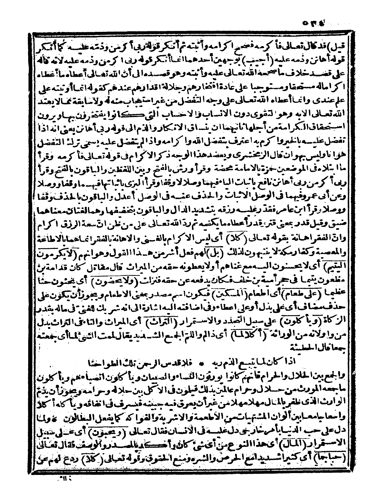 ثانيهما: أن ينساق الإنكار والذم إلى قوله: {ربي أهانن} يعني أنه إذا تفضل عليه بالخير وأكرم به اعترف بتفضل الله وإكرامه، وإذا لم يتفضل عليه يسمى ترك التفضل هواناً وليس بهوان. قال الزمخشري: ويعضد هذا الوجه ذكر الإكرام في قوله تعالى: {فأكرمه} وقرأ {ما ابتلاه} في الموضعين حمزة بالإمالة محضة، وقرأ ورش بالفتح وبين اللفظين والباقون بالفتح، وقرأ {ربي أكرمن} {ربي أهانن} نافع بإثبات الياء فيهما وصلاً لا وقفاً، وقرأ البزي بإثباتها فيهما وقفاً ووصلاً، وعن أبي عمرو فيهما في الوصل الإثبات والحذف عنه في الوصل أعدل، والباقون بالحذف وقفاً ووصلاً. وقرأ ابن عامر {فقدّر عليه رزقه} بتشديد الدال والباقون بتخفيفها، وهما لغتان معناهما ضيق. وقيل: قدر بمعنى قتر وقدر أعطاه ما يكفيه.