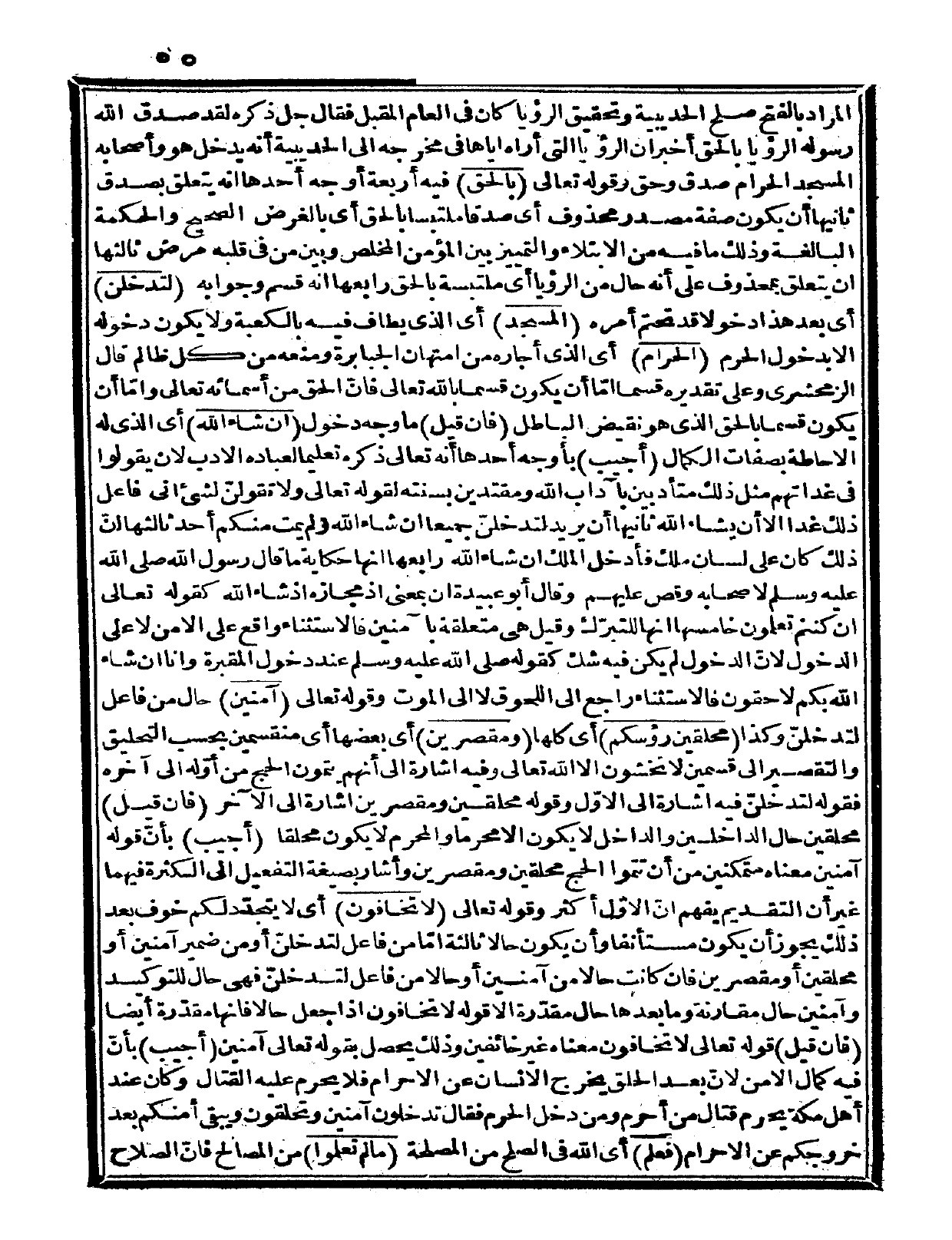 المراد بالفتح صلح الحديبية وتحقيق الرؤيا كان في العام المقبل فقال جل ذكره {لقد صدق الله رسوله الرؤيا بالحق} أخبر أن الرؤيا التي أراه إياها في مخرجه إلى الحديبية أنه يدخل هو وأصحابه المسجد الحرام صدق وحق وقوله تعالى {بالحق} فيه أربعة أوجه.