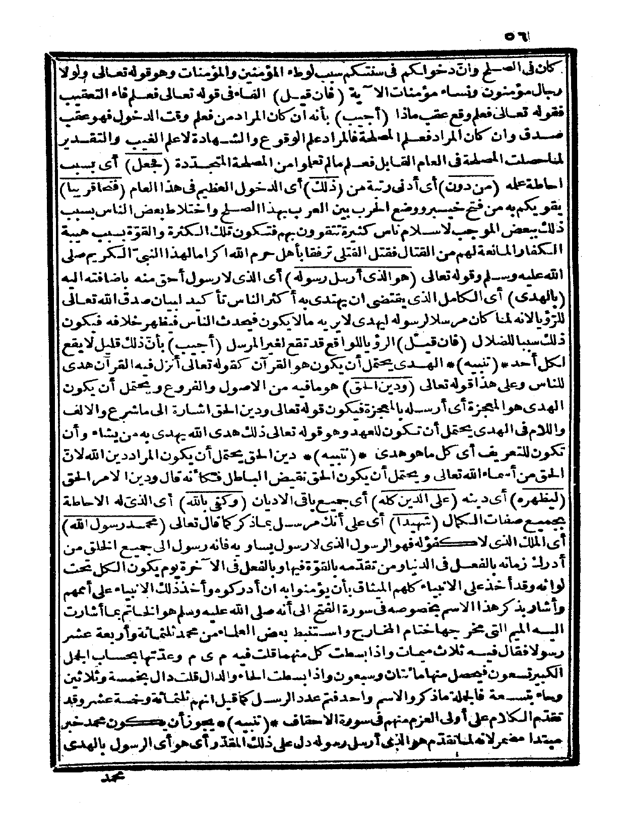 كان في الصلح وإنّ دخولكم في سنتكم سبب لوطء المؤمنين والمؤمنات وهو قوله تعالى: {ولولا رجال مؤمنون ونساء مؤمنات} (الفتح: 25)