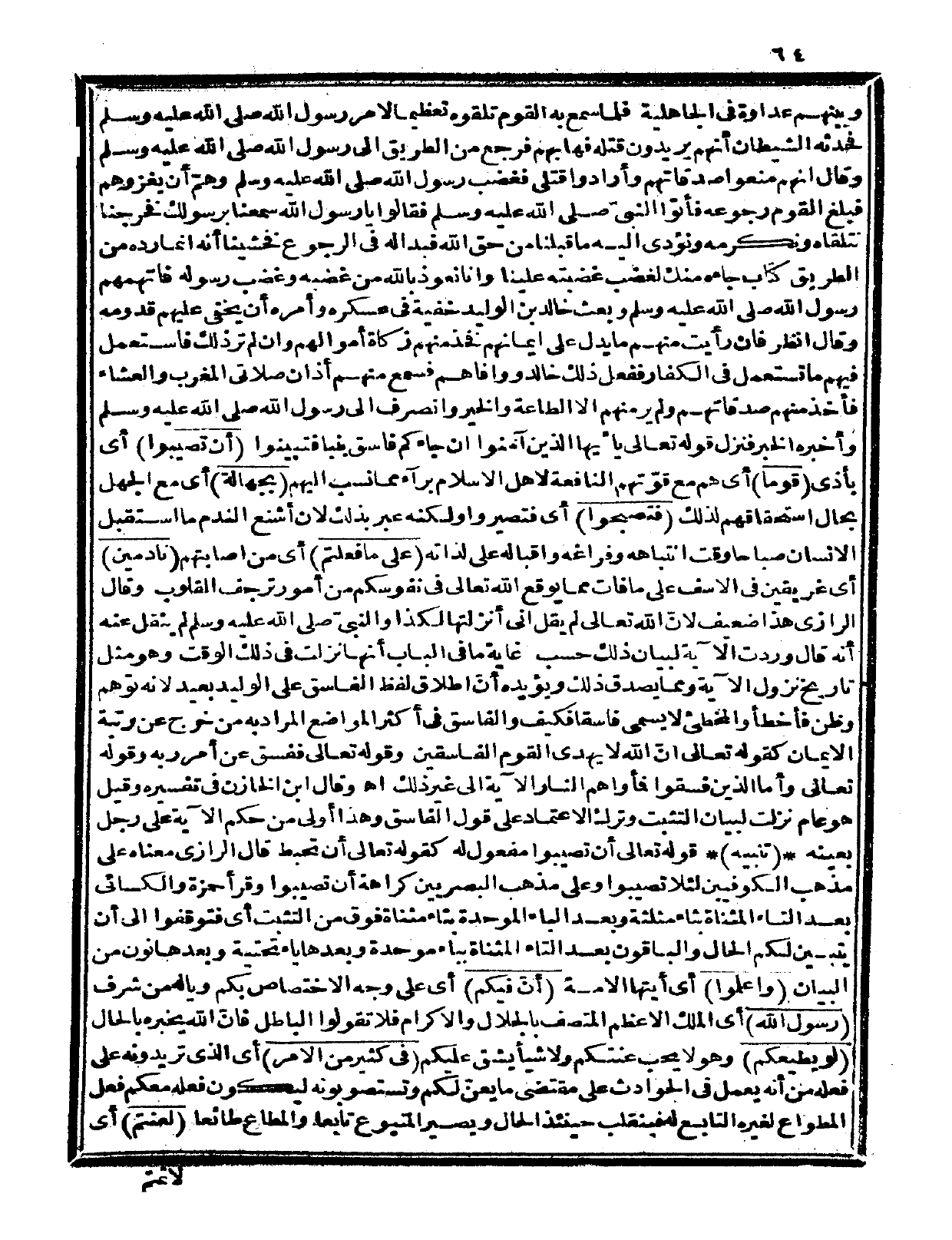 قال الرازي: معناه على مذهب الكوفيين لئلا تصيبوا وعلى مذهب البصريين كراهة أن تصيبوا وقرأ حمزة والكسائي: بعد التاء المثناة بثاء مثلثة وبعد الباء الموحدة بتاء مثناة فوق من التثبت أي: فتوقفوا إلى أن يتبين لكم الحال. والباقون بعد التاء المثناة بباء موحدة وبعدها ياء تحتية وبعدها نون من البيان.