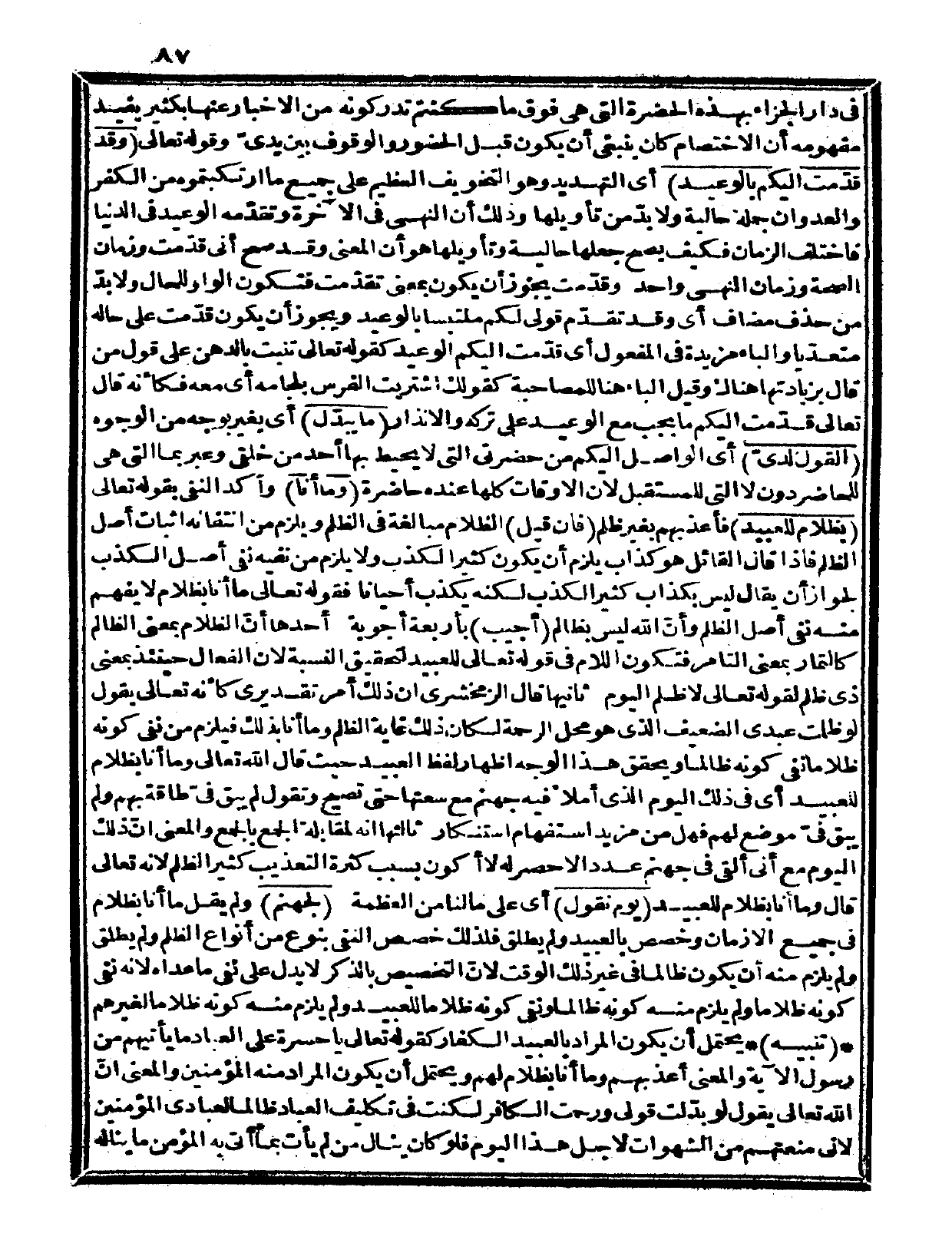 تنبيه: يحتمل أن يكون المراد بالعبيد الكفار كقوله تعالى: {يا حسرة على العباد ما يأتيهم من رسول} (يس: 30)