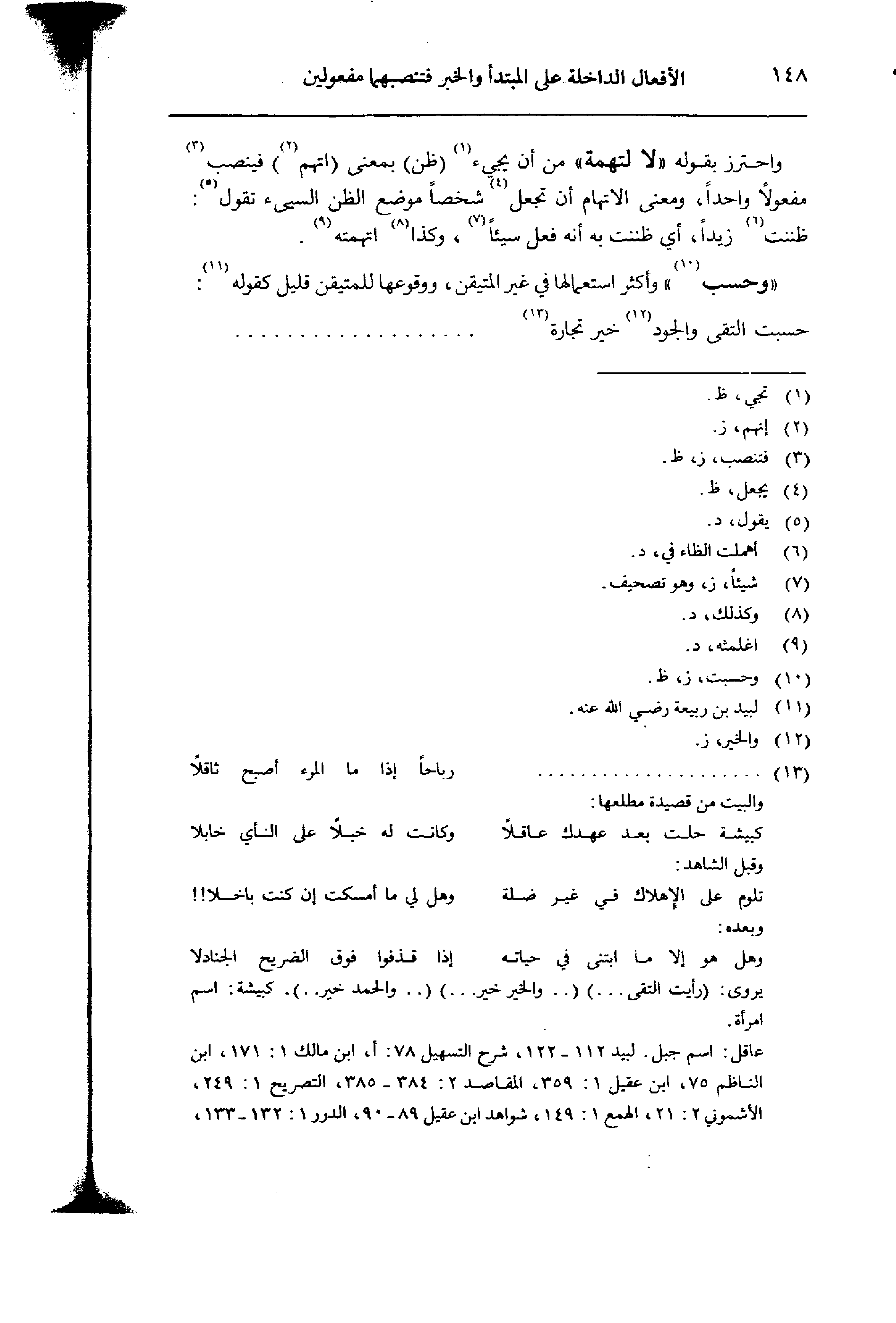 «وحسب» وأكثر استعمالها في غير المتيفن، ووقوعها للمتيقن قليل كقوله: