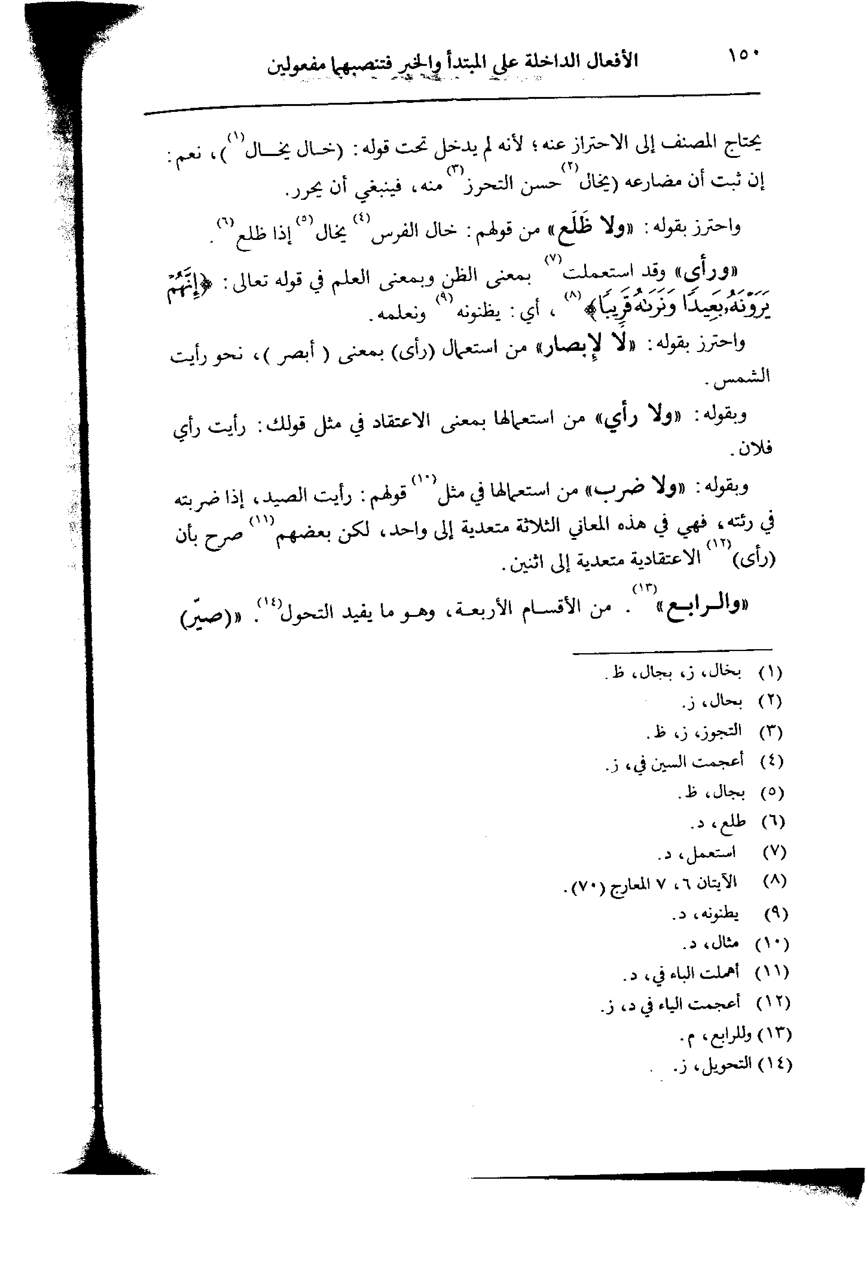 واحترز بقوله: «لا لإبصار» من استعمال (رأى) بمعنى (أبصر)، نحو رأيت الشمس.