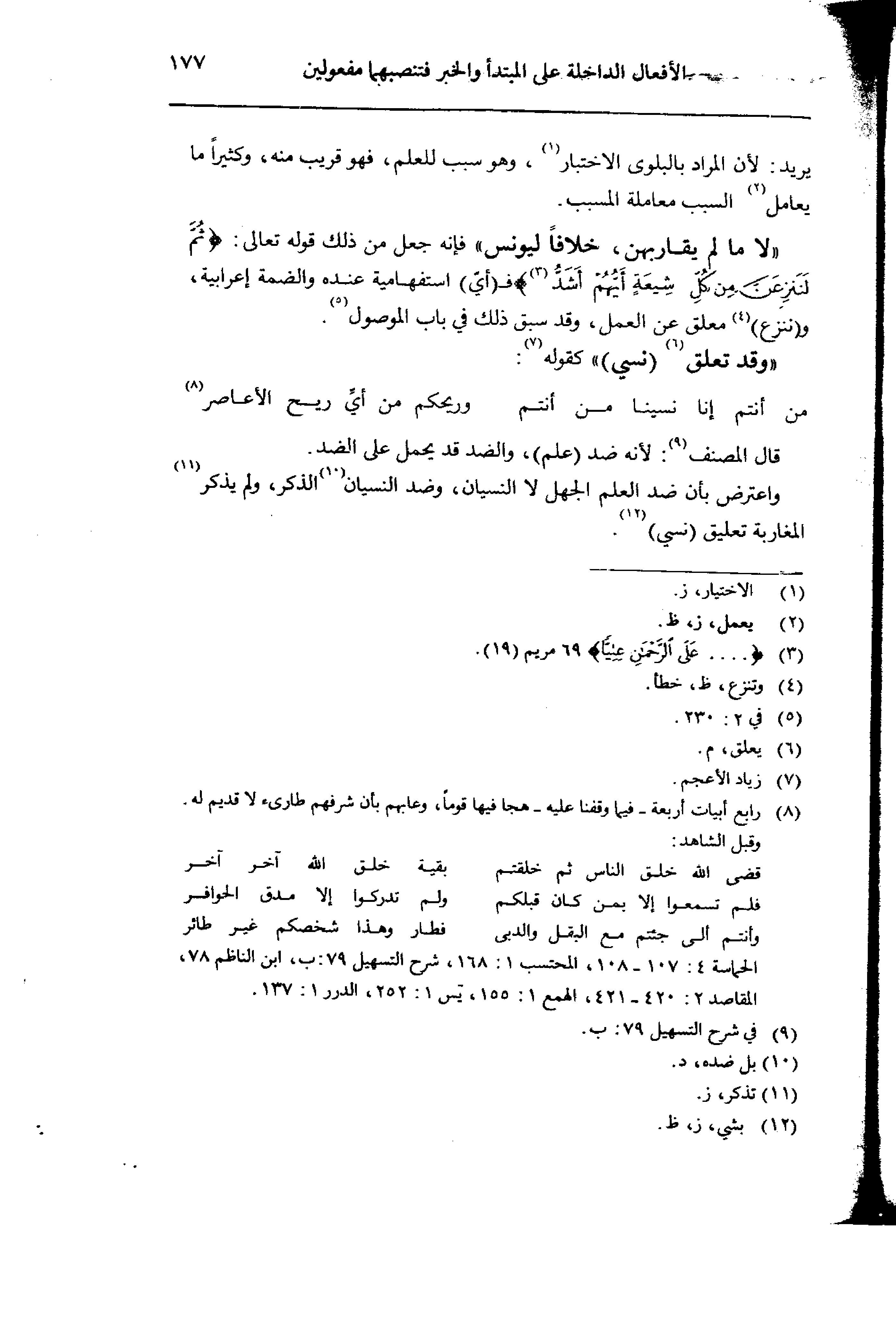 واعترض بأن ضد العلم الجهل لا النسيان، وضد النسيان الذكر، ولم يذكر المغاربة تعليق (نسي)