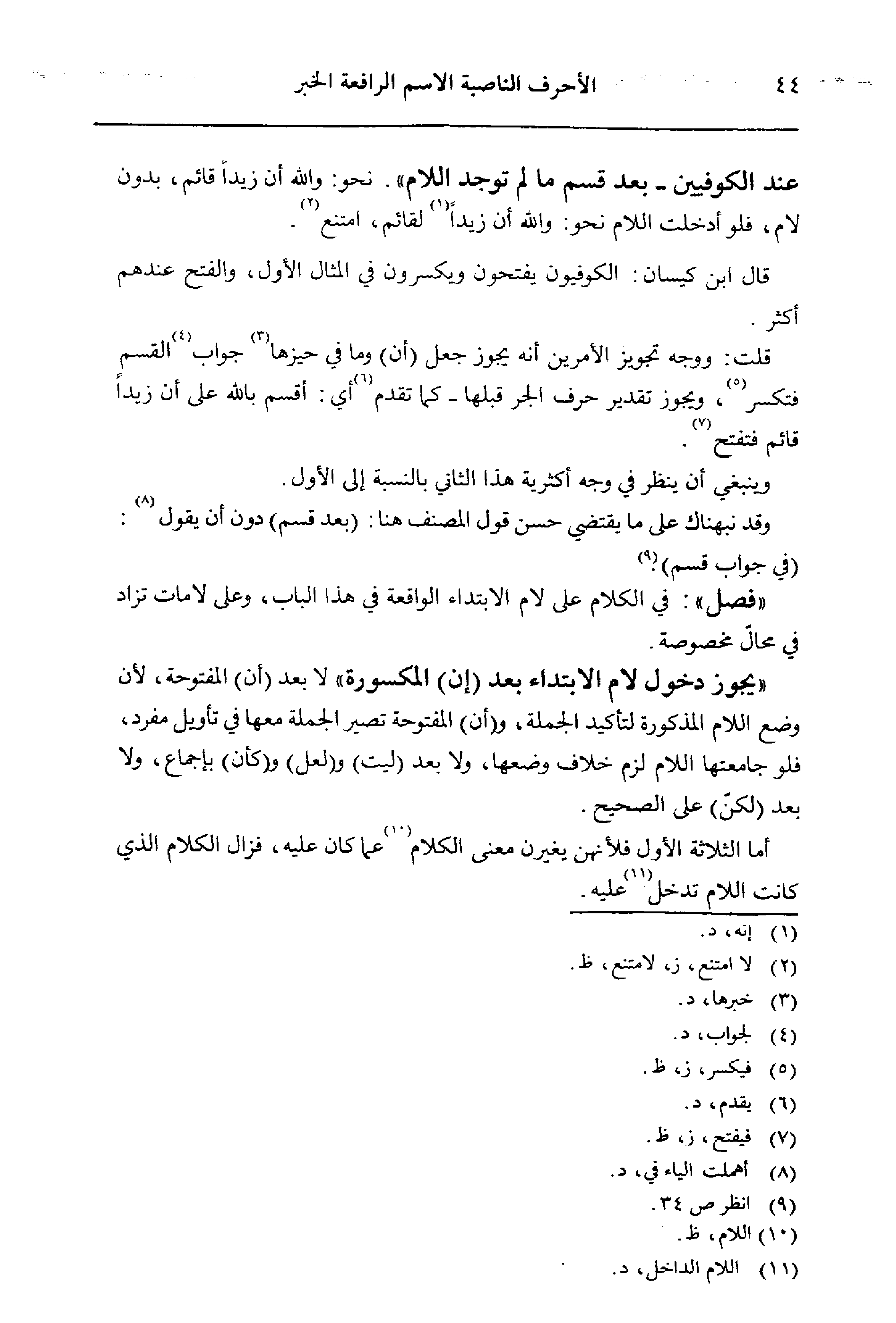 «فصل»: في الكلام على لام الابتداء الواقعة في هذا الباب، وعلى لامات تزاد في محال مخصوصة.