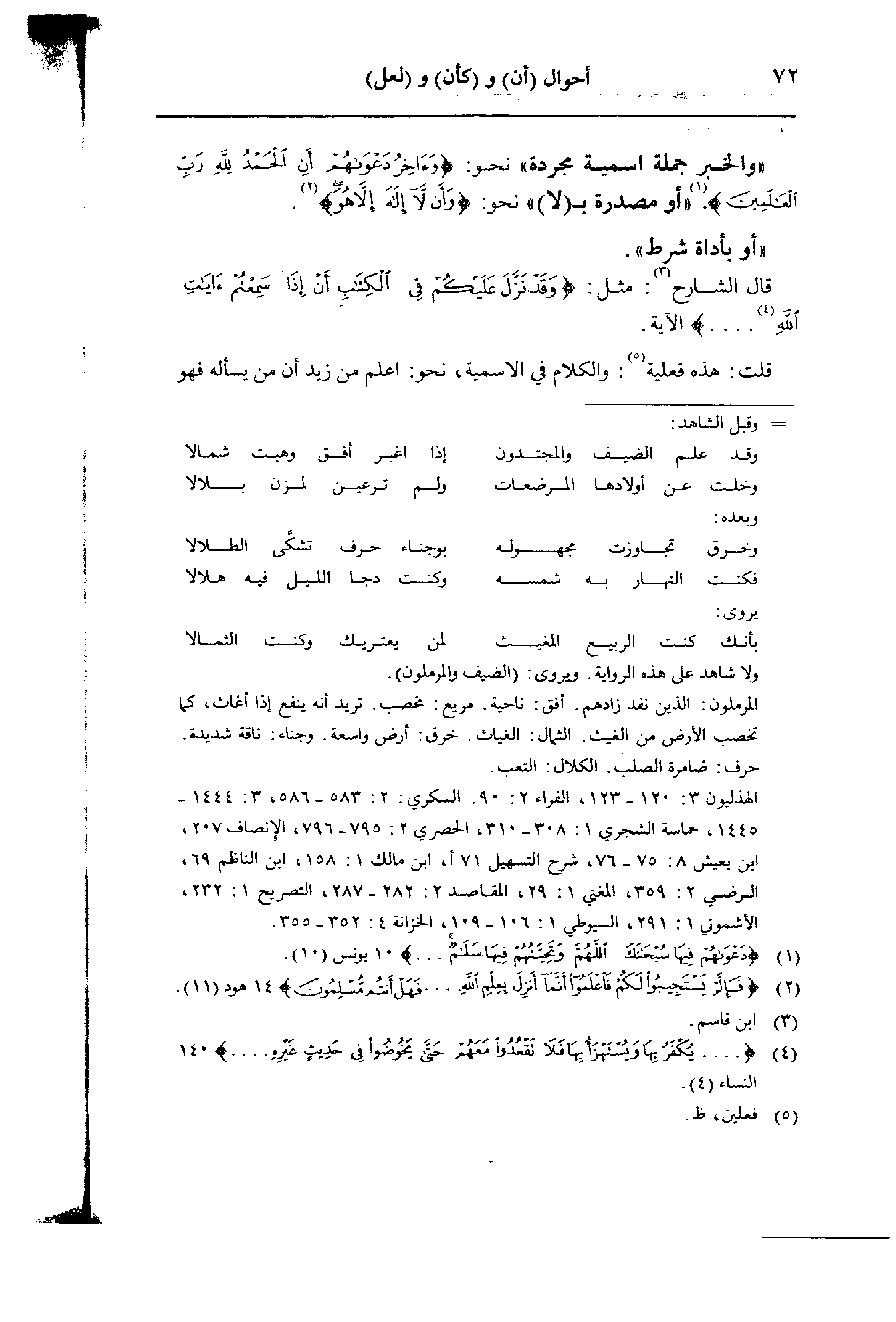 قال الشارح: مثل: {وَقَدْ نَزَّلَ عَلَيْكُمْ فِي الْكِتَابِ أَنْ إِذَا سَمِعْتُمْ آيَاتِ اللَّهِ ......... } الآية.