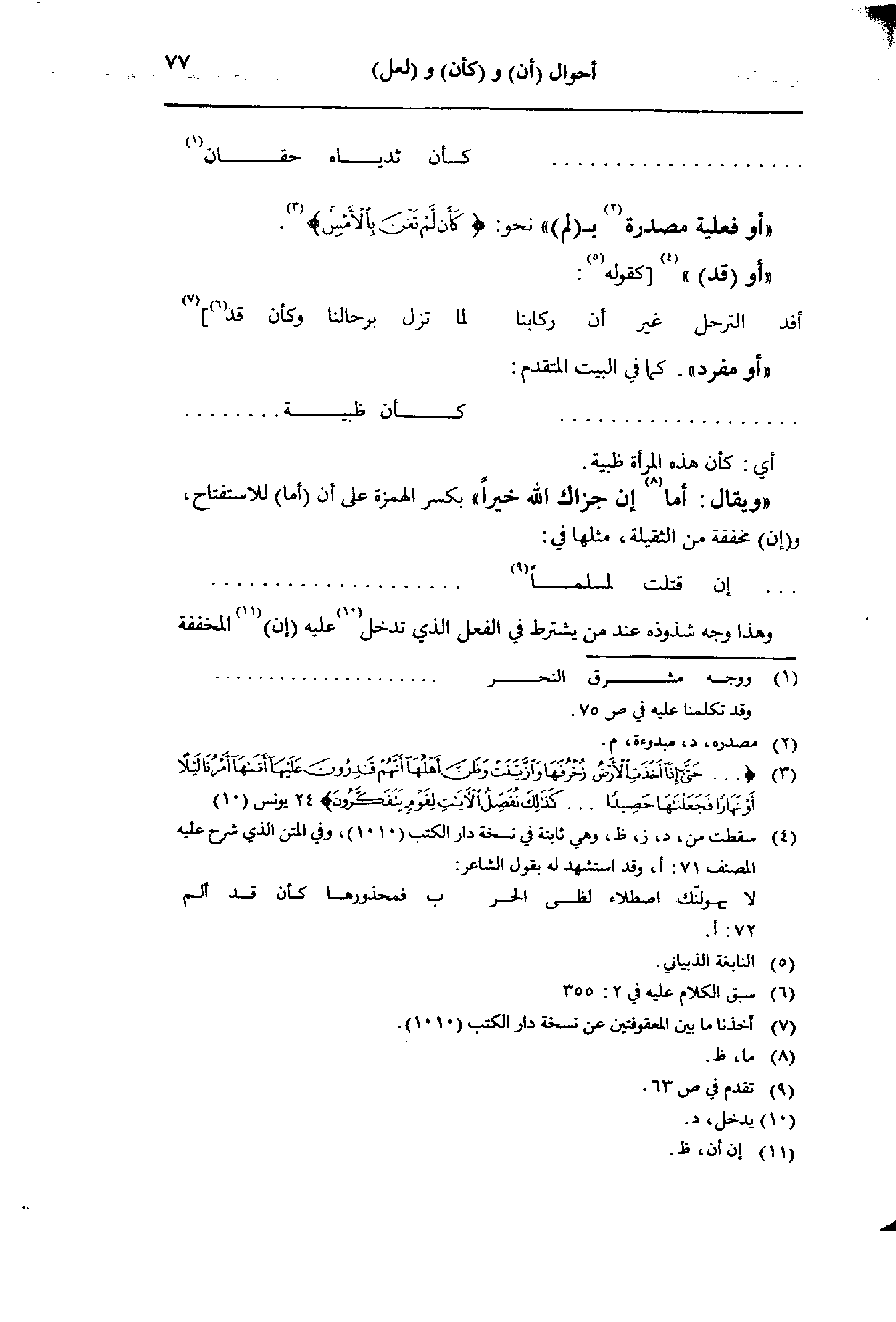 «أو فعلية مصدرة ب (لم)» نحو: {كَأَنْ لَمْ تَغْنَ بِالأَمْسِ}.
