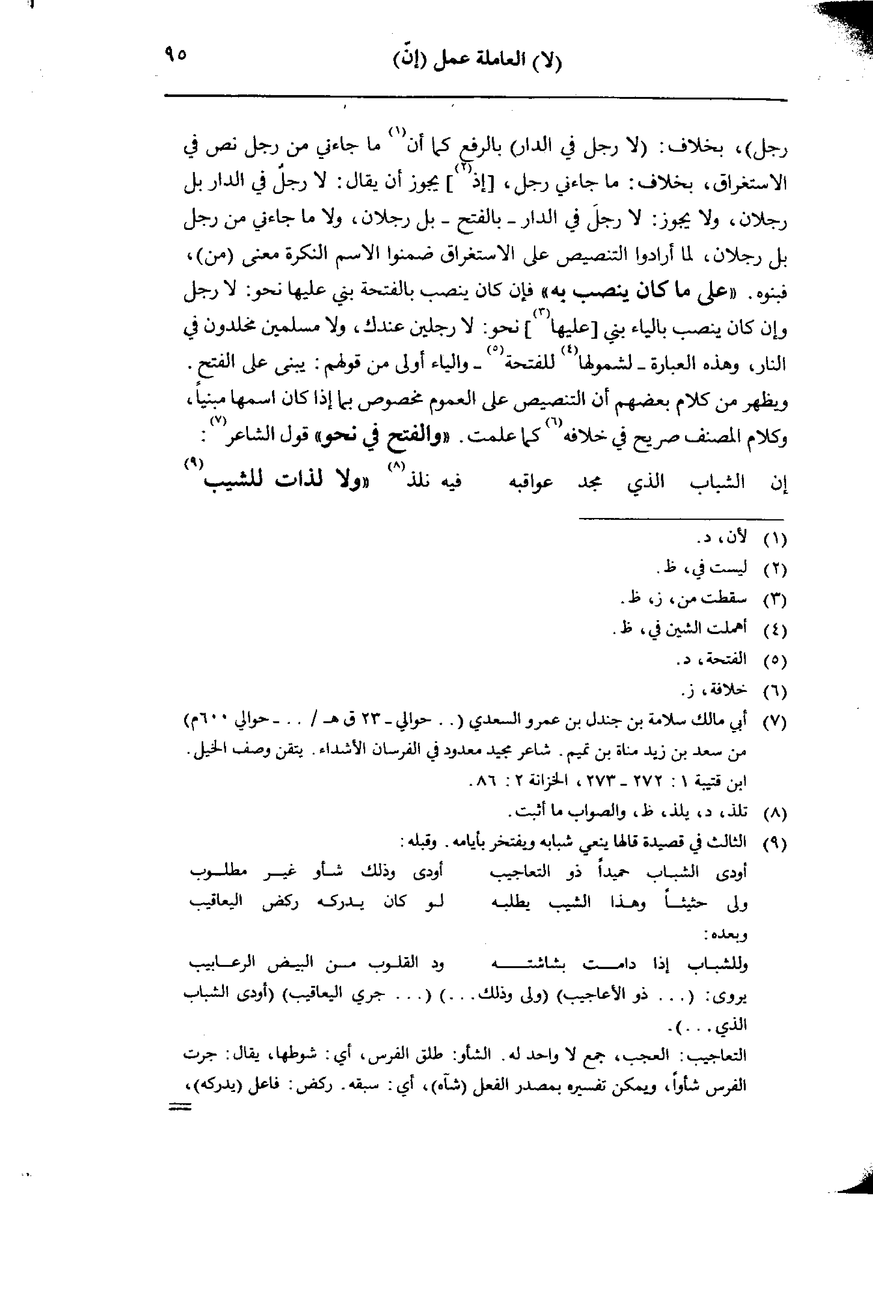 ويظهر من كلام بعضهم أن التنصيص على العموم مخصوص بما إذا كان اسمها مبتيا، وكلام المصنف صريح في خلافه كما علمت. «والفتح في نحو» قول الشاعر:
