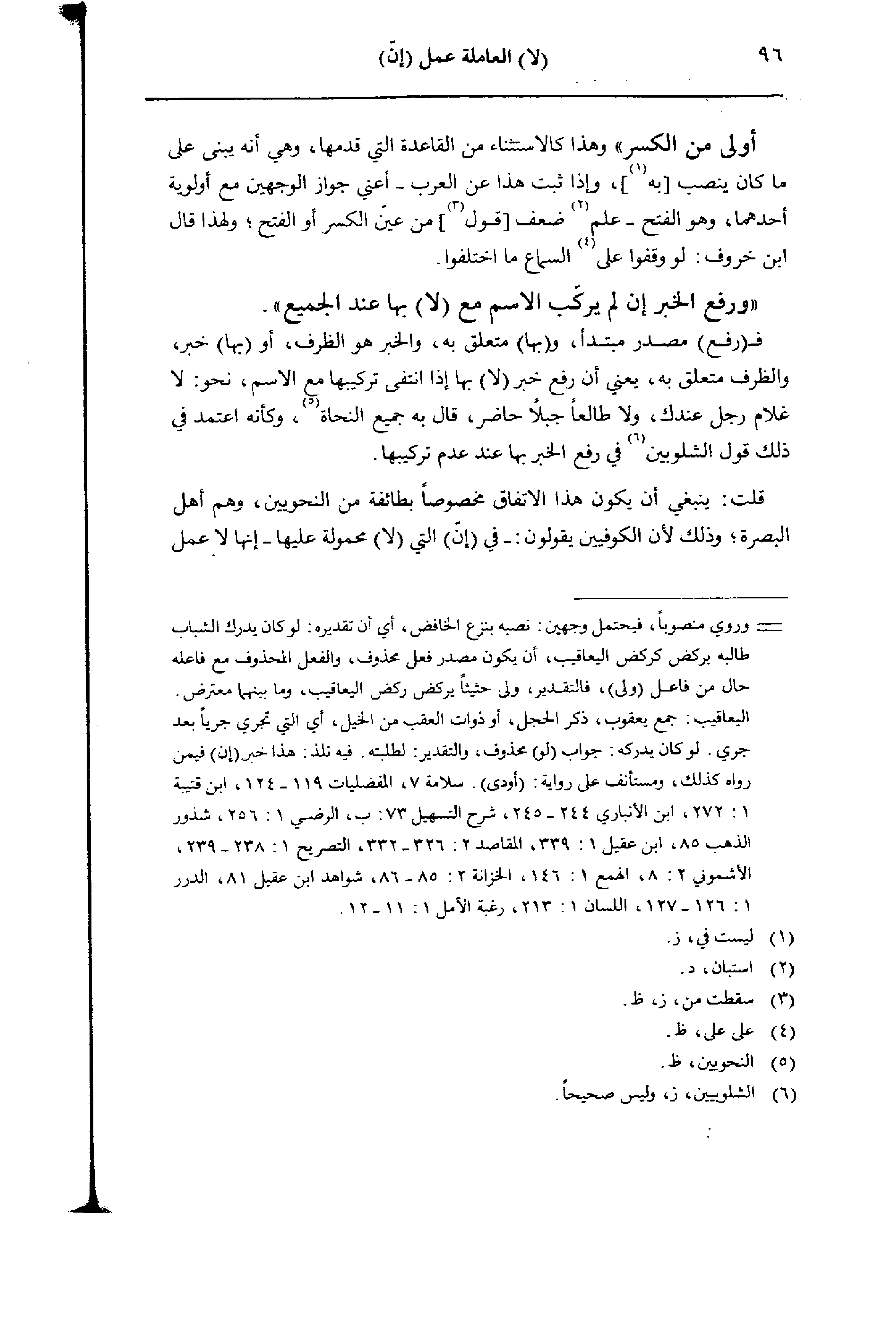 قلت: ينبغي أن يكون هذا الاتفاق مخصوصا بطائفة من النحويين، وهم أهل البصرة؛ وذلك لأن الكوفيين يقولون: - في (إن) التي (لا) محمولة عليها- إنها لا عمل