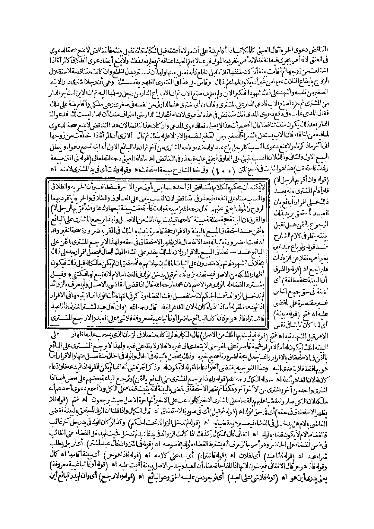 لَا يُمْكِنُهُ أَنْ يَحْكُمَ بِالْكَلَامِ الْمُتَنَاقِضِ إذْ أَحَدُهُمَا لَيْسَ بِأَوْلَى مِنْ الْآخَرِ فَسَقَطَا غَيْرَ أَنَّ الْحُرِّيَّةَ وَالطَّلَاقَ وَالنَّسَبَ مَبْنَاهُ عَلَى الْخَفَاءِ فَيُعْذَرُ فِي التَّنَاقُضِ؛ لِأَنَّ النَّسَبَ يَنْبَنِي عَلَى الْعُلُوقِ وَالطَّلَاقُ وَالْحُرِّيَّةُ يَنْفَرِدُ بِهِمَا الزَّوْجُ وَالْمَوْلَى فَيَخْفَى عَلَيْهِمْ.