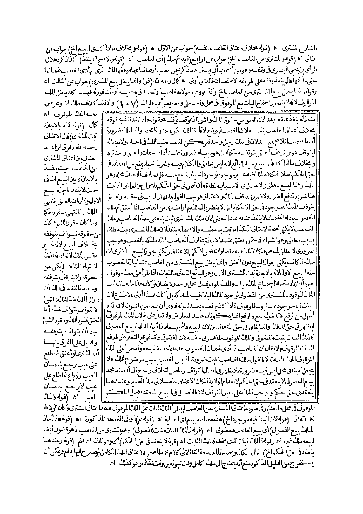 ـــــــــــــــــــــــــــــQالشَّارِحِ الْمُشْتَرِي. اهـ. (قَوْلُهُ بِخِلَافِ إعْتَاقِ الْغَاصِبِ بِنَفْسِهِ) جَوَابٌ عَنْ الْأَوَّلِ. اهـ. (قَوْلُهُ وَبِخِلَافِ مَا إذَا كَانَ فِي الْبَيْعِ إلَخْ) جَوَابٌ عَنْ الثَّانِي. اهـ. (قَوْلُهُ وَالْمُشْتَرِي مِنْ الْغَاصِبِ إلَخْ) جَوَابٌ عَنْ الرَّابِعِ (قَوْلُهُ، ثُمَّ مَلَكَ) أَيْ الْغَاصِبُ. اهـ. (قَوْلُهُ وَالْأَصَحُّ أَنَّهُ يَنْفُذُ) كَذَا ذَكَرَهُ هِلَالُ الرَّأْيِ ابْنُ يَحْيَى الْبَصْرِيُّ فِي وَقْفِهِ وَهُوَ مِنْ أَصْحَابِ أَبِي يُوسُفَ فَإِنَّهُ ذَكَرَ فِيمَنْ غَصَبَ أَرْضًا فَبَاعَهَا فَوَقَفَهَا الْمُشْتَرِي، ثُمَّ أَدَّى الْغَاصِبُ ضَمَانَهَا حَتَّى مَلَكَهَا قَالَ: يَنْفُذُ وَقْفُهُ عَلَى طَرِيقَةِ الِاسْتِحْسَانِ فَالْعِتْقُ أَوْلَى. اهـ. كَمَالٌ - رَحِمَهُ اللَّهُ - (قَوْلُهُ وَإِنَّمَا يَبْطُلُ بَيْعُ الْمُشْتَرِي) جَوَابٌ عَنْ الثَّالِثِ اهـ وَقَوْلُهُ وَإِنَّمَا يَبْطُلُ بَيْعُ الْمُشْتَرِي مِنْ الْغَاصِبِ إلَخْ وَكَذَا لَوْ وَهَبَهُ مَوْلَاهُ لِلْغَاصِبِ أَوْ تَصَدَّقَ بِهِ عَلَيْهِ أَوْ مَاتَ فَوَرِثَهُ فَهَذَا كُلُّهُ يُبْطِلُ الْمِلْكَ الْمَوْقُوفَ؛ لِأَنَّهُ لَا يُتَصَوَّرُ اجْتِمَاعُ الْبَاتِّ مَعَ الْمَوْقُوفِ فِي مَحَلٍّ وَاحِدٍ عَلَى وَجْهٍ يَطْرَأُ فِيهِ الْبَاتُّ وَإِلَّا فَقَدْ كَانَ فِيهِ مِلْكٌ بَاتٌّ وَعَرَضَ مَعَهُ الْمِلْكُ الْمَوْقُوفُ اهـ كَمَالٌ.