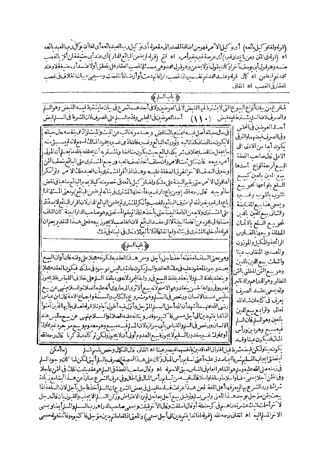 (بَابُ السَّلَمِ) لَمَّا فَرَغَ مِنْ بَيَانِ أَنْوَاعِ الْبُيُوعِ الَّتِي لَا يُشْتَرَطُ فِيهَا الْقَبْضُ لَا فِي الْعِوَضَيْنِ وَلَا فِي أَحَدِهِمَا شَرَعَ فِي بَيَانِ مَا يُشْتَرَطُ فِيهِ الْقَبْضُ وَهُوَ السَّلَمُ وَالصَّرْفُ؛ لِأَنَّ السَّلَمَ يُشْتَرَطُ فِيهِ قَبْضُ أَحَدِ الْعِوَضَيْنِ فِي الْمَجْلِسِ وَقَدَّمَ السَّلَمَ عَلَى الصَّرْفِ؛ لِأَنَّ الشَّرْطَ فِي السَّلَمِ قَبْضُ أَحَدِ الْعِوَضَيْنِ فِي الْمَجْلِسِ وَفِي الصَّرْفِ قَبْضُهُمَا وَالتَّرَقِّي يَكُونُ أَبَدًا مِنْ الْأَدْنَى إلَى الْأَعْلَى قَالَ صَاحِبُ التُّحْفَةِ: الْبَيْعُ أَرْبَعَةُ أَنْوَاعٍ: أَحَدُهَا بَيْعُ الْعَيْنِ بِالْعَيْنِ كَبَيْعِ السِّلَعِ بِأَنْوَاعِهَا نَحْوُ بَيْعِ الثَّوْبِ بِالثَّوْبِ وَغَيْرِهِ وَيُسَمَّى هَذَا بَيْعَ الْمُقَايَضَةِ وَالثَّانِي بَيْعُ الْعَيْنِ بِالدَّيْنِ نَحْوُ بَيْعِ السِّلَعِ بِالْأَثْمَانِ الْمُطْلَقَةِ وَبَيْعِهَا بِالْفُلُوسِ الرَّائِجَةِ وَالْمَكِيلِ وَالْمَوْزُونِ وَالْمَعْدُودِ الْمُتَقَارِبِ دَيْنًا وَالثَّالِثُ بَيْعُ الدَّيْنِ بِالدَّيْنِ وَهُوَ بَيْعُ الثَّمَنِ الْمُطْلَقِ بِالثَّمَنِ الْمُطْلَقِ وَهُوَ الدَّرَاهِمُ وَالدَّنَانِيرُ وَإِنَّهُ يُسَمَّى عَقْدَ الصَّرْفِ يُعْرَفُ فِي كِتَابِهِ إنْ شَاءَ اللَّهُ تَعَالَى وَالرَّابِعُ بَيْعُ الدَّيْنِ بِالْعَيْنِ وَهُوَ السَّلَمُ فَإِنَّ السَّلَمَ فِيهِ مَبِيعٌ وَهُوَ دَيْنٌ وَرَأْسُ الْمَالِ قَدْ يَكُونُ عَيْنًا وَقَدْ يَكُونُ دَيْنًا، وَلَكِنَّ قَبْضَهُ شُرِطَ قَبْلَ افْتِرَاقِ الْعَاقِدَيْنِ بِأَنْفُسِهِمَا فَيَصِيرُ عَيْنًا. اهـ. أَتْقَانِيٌّ قَالَ الْكَمَالُ: وَخُصَّ بِاسْمِ السَّلَمِ لِيَتَحَقَّقَ إيجَابُ التَّسْلِيمِ شَرْعًا فِيمَا صَدَقَ عَلَيْهِ أَعْنِي تَسْلِيمَ رَأْسِ الْمَالِ وَكَانَ عَلَى هَذَا تَسْمِيَةُ الصَّرْفِ بِالسَّلَمِ أَلْيَقُ لَكِنْ لَمَّا كَانَ وُجُودُ السَّلَمِ فِي زَمَنِهِ - صَلَّى اللَّهُ عَلَيْهِ وَسَلَّمَ - هُوَ الظَّاهِرُ الْعَامُّ فِي النَّاسِ سَبَقَ الِاسْمُ لَهُ اهـ وَقَالَ صَاحِبُ التُّحْفَةِ فِي السَّلَمِ هُوَ عَقْدٌ يُثْبِتُ الْمِلْكَ فِي الثَّمَنِ عَاجِلًا وَفِي الْمُثْمَنِ آجِلًا يُسَمَّى سَلَمًا وَإِسْلَامًا وَسَلَفًا وَإِسْلَافًا لِمَا فِيهِ مِنْ تَسْلِيمِ رَأْسِ الْمَالِ فِي الْحَالِ وَفِي عُرْفِ الشَّرْعِ عِبَارَةٌ عَنْ هَذَا أَيْضًا مَعَ زِيَادَةِ شَرَائِطَ وَرَدَ الشَّرْعُ بِهَا لَمْ يَعْرِفْهَا أَهْلُ اللُّغَةِ فَعَنْ هَذَا عَرَفْت فَسَادَ مَا قِيلَ فِي بَعْضِ الشُّرُوحِ أَنَّ السَّلَمَ أَخْذُ عَاجِلٍ بِآجِلٍ؛ لِأَنَّ السِّلْعَةَ إذَا بِيعَتْ بِثَمَنٍ مُؤَجَّلٍ يُوجَدُ هَذَا الْمَعْنَى وَلَيْسَ بِسَلَمٍ وَلَوْ قِيلَ: بَيْعُ آجِلٍ بِعَاجِلٍ لَمْ يَرِدْ الِاعْتِرَاضُ وَرُكْنُ السَّلَمِ الْإِيجَابُ وَالْقَبُولُ بِأَنْ قَالَ رَجُلٌ لِآخَرَ: أَسْلَمْت إلَيْك عَشَرَةَ دَرَاهِمَ فِي كُرِّ حِنْطَةٍ أَوْ قَالَ: أَسْلَفْت وَقَالَ الْآخَرُ: قَبِلْت وَيُسَمَّى صَاحِبُ الدَّرَاهِمِ رَبَّ السَّلَمِ وَالْمُسْلِمَ أَيْضًا وَيُسَمَّى الْآخَرُ الْمُسْلَمُ إلَيْهِ. اهـ. أَتْقَانِيٌّ - رَحِمَهُ اللَّهُ - (قَوْلُهُ {إِذَا تَدَايَنْتُمْ بِدَيْنٍ إِلَى أَجَلٍ مُسَمًّى} [البقرة: 282] وَالْمَعْنَى إذَا تَعَامَلْتُمْ بِدَيْنٍ مُؤَجَّلٍ فَاكْتُبُوهُ وَفَائِدَةُ قَوْلِهِ مُسَمًّى