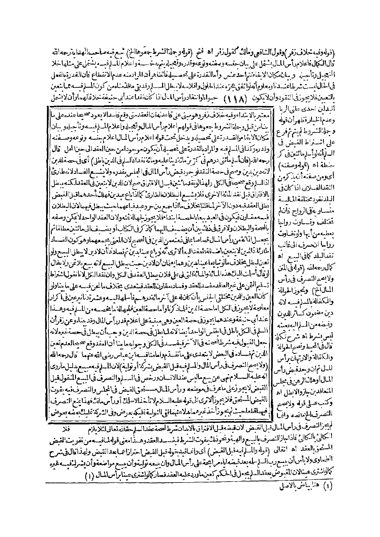 ـــــــــــــــــــــــــــــQقَوْلُهُ وَفِيهِ خِلَافُ زُفَرَ) وَقَوْلُ الشَّافِعِيِّ وَمَالِكٍ كَقَوْلِ زُفَرَ. اهـ. فَتْحٌ (قَوْلُهُ وَجُمْلَةُ الشُّرُوطِ جَمَعُوهَا إلَخْ) تَبِعَ فِيهِ صَاحِبَ الْهِدَايَةِ - رَحِمَهُ اللَّهُ - قَالَ الْكَمَالُ فَإِعْلَامُ رَأْسِ الْمَالِ يَشْتَمِلُ عَلَى بَيَانِ جِنْسِهِ وَصِفَتِهِ وَنَوْعِهِ وَقَدْرِهِ وَتَعْجِيلُهُ يَتِمُّ بِهِ خَمْسَةٌ وَإِعْلَامُ الْمُسْلَمِ فِيهِ يَشْتَمِلُ عَلَى مِثْلِهَا خَلَا التَّعْجِيلِ وَتَأْجِيلِهِ وَبَيَانُ مَكَانِ الْإِيفَاءِ تَتِمُّ أَحَدَ عَشَرَ وَأَمَّا الْقُدْرَةُ عَلَى تَحْصِيلِهِ فَالظَّاهِرُ أَنَّ الْمُرَادَ مِنْهُ عَدَمُ الِانْقِطَاعِ فَإِنَّ الْقُدْرَةَ بِالْفِعْلِ فِي الْحَالِ لَيْسَتْ شَرْطًا عِنْدَنَا وَمَعْلُومٌ أَنَّهُ لَوْ اتَّفَقَ عَجْزُهُ عِنْدَ الْحُلُولِ وَإِفْلَاسُهُ لَا يُبْطِلُ السَّلَمَ وَقَدْ بَقِيَ مَا قَدَّمْنَاهُ مِنْ كَوْنِ الْمُسْلَمِ فِيهِ مِمَّا يَتَعَيَّنُ بِالتَّعْيِينِ فَلَا يَجُوزُ فِي النُّقُودِ وَأَنْ لَا يَكُونَ حَيَوَانًا وَانْتِقَادُ رَأْسِ الْمَالِ إذَا كَانَ نَقْدًا عِنْدَ أَبِي حَنِيفَةَ خِلَافًا لَهُمَا وَأَنْ لَا يَشْمَلَ الْبَدَلَيْنِ إحْدَى عِلَّتَيْ الرِّبَا وَعَدَمُ الْخِيَارِ فَظَهَرَ أَنَّ قَوْلَهُ وَجُمْلَةُ الشُّرُوطِ لَمْ يَتِمَّ، ثُمَّ فَرَّعَ عَلَى اشْتِرَاطِ الْقَبْضِ فِي السَّلَمِ أَنَّهُ لَوْ أَسْلَمَ مِائَتَيْنِ فِي كُرِّ حِنْطَةٍ. اهـ. (قَوْلُهُ وَصِفَتُهُ) أَيْ وَمِنْ صِفَتِهِ أَنْ يَذْكُرَ مِنْ النَّقْدِ الْفُلَانِيِّ إذَا كَانَ فِي الْبَلَدِ نُقُودٌ مُخْتَلِفَةُ الْمَالِيَّةَ مُتَسَاوِيَةً فِي الرَّوَاجِ فَإِنْ لَمْ تَخْتَلِفْ وَتَسَاوَتْ رَوَاجًا يُعْطِيهِ مِنْ أَيُّهَا وَلَوْ تَفَاوَتَ رَوَاجًا انْصَرَفَ إلَى غَالِبِ نَقْدِ الْبَلَدِ كَمَا فِي الْبَيْعِ. اهـ. كَمَالٌ - رَحِمَهُ اللَّهُ -.