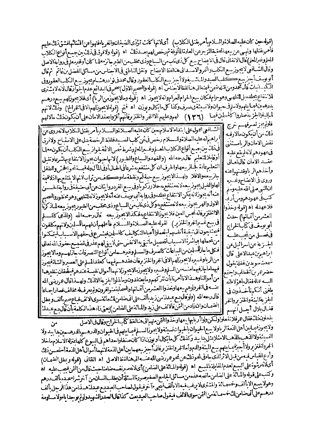قَالَ - رَحِمَهُ اللَّهُ - (، وَالذِّمِّيُّ كَالْمُسْلِمِ فِي بَيْعِ غَيْرِ الْخَمْرِ، وَالْخِنْزِيرِ) لِقَوْلِهِ - عَلَيْهِ الصَّلَاةُ وَالسَّلَامُ - فَأَعْلِمْهُمْ أَنَّ لَهُمْ مَا لِلْمُسْلِمِينَ وَلِأَنَّهُمْ مُكَلَّفُونَ فَيَحْتَاجُونَ إلَى تَبْقِيَةِ أَنْفُسِهِمْ لِيَتَحَمَّلُوا أَعْبَاءَ التَّكَالِيفِ كَالْمُسْلِمِينَ فَيُشْرَعُ فِي حَقِّهِمْ الْأَسْبَابُ لِيَتَمَكَّنُوا مِنْ تَحَمُّلِهَا بِمُبَاشَرَةِ الْأَسْبَابِ لِتَحْصِيلِ مَا تَبْقَى بِهِ الْأَنْفُسُ حَتَّى لَا يَبْقَى لَهُمْ عُذْرٌ فِي تَضْيِيعِ حُقُوقِ اللَّهِ تَعَالَى فَكُلُّ مَا جَازَ لِلْمُسْلِمِينَ مِنْ الْبِيَاعَاتِ كَالصَّرْفِ، وَالسَّلَمِ وَغَيْرِهِمَا مِنْ أَنْوَاعِ التَّصَرُّفَاتِ جَازَ لَهُمْ وَمَا لَا يَجُوزُ مِنْ الرِّبَا وَغَيْرِهِ لَا يَجُوزُ لَهُمْ إلَّا فِي الْخَمْرِ، وَالْخِنْزِيرِ فَإِنَّ عَقْدَهُمْ فِيهِمَا كَعَقْدِ الْمُسْلِمِ عَلَى الْعَصِيرِ، وَالشَّاةِ فَيَجُوزُ فِيهِمَا مَا جَازَ فِيهِمَا مِنْهُ مِنْ السَّلَمِ وَغَيْرِهِ وَلَا يَجُوزُ مَا لَا يَجُوزُ؛ لِأَنَّهُمَا أَمْوَالٌ نَفِيسَةٌ عِنْدَهُمْ فَيُلْحَقَانِ بِنَظِيرِهِمَا مِنْ أَمْوَالِنَا، وَهَذَا؛ لِأَنَّا أُمِرْنَا بِأَنْ نَتْرُكَهُمْ وَمَا يَعْتَقِدُونَ وَمَا بَذَلُوا الْجِزْيَةَ إلَّا لِذَلِكَ وَلِهَذَا قَالَ عُمَرُ - رَضِيَ اللَّهُ عَنْهُ - فِي الْخَمْرِ وَلُّوهُمْ بَيْعَهَا وَخُذُوا الْعُشْرَ مِنْ أَثْمَانِهَا، وَالصَّحَابَةُ مُتَوَافِرُونَ وَلَمْ يُعْرَفْ لَهُ مُخَالِفٌ فَصَارَ إجْمَاعًا.