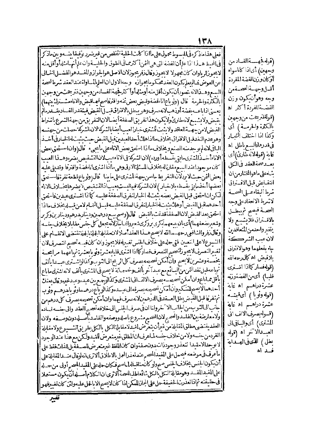 (قَوْلُهُ فَتَرَجَّحَتْ مِنْ وَجْهَيْنِ بِالْكَثْرَةِ وَالْحُرْمَةِ) أَيْ، وَكَذَا إذَا اخْتَلَفَ التُّجَّارُ فِي قَدْرِهَا فَالْبَيْعُ بَاطِلٌ اهـ غَايَةٌ (قَوْلُهُ: لِأَنَّهُ طَارِئٌ) أَيْ بَعْدَ صِحَّةِ الْعَقْدِ فِي الْكُلِّ بِنَاءً عَلَى مَا هُوَ الْمُخْتَارُ مِنْ أَنَّ التَّقَابُضَ قَبْلَ الِافْتِرَاقِ شَرْطُ الْبَقَاءِ عَلَى الصِّحَّةِ لَا شَرْطُ الِانْعِقَادِ عَلَى وَجْهِ الصِّحَّةِ فَيَصِحُّ ثُمَّ يَبْطُلُ بِالِافْتِرَاقِ، فَلَا يَشِيعُ وَلَا يَتَخَيَّرُ وَاحِدٌ مِنْ الْمُتَعَاقِدَيْنِ لِأَنَّ عَيْبَ الشَّرِكَةِ جَاءَ بِفِعْلِهِمَا وَهُوَ الِافْتِرَاقُ بِلَا قَبْضٍ اهـ.