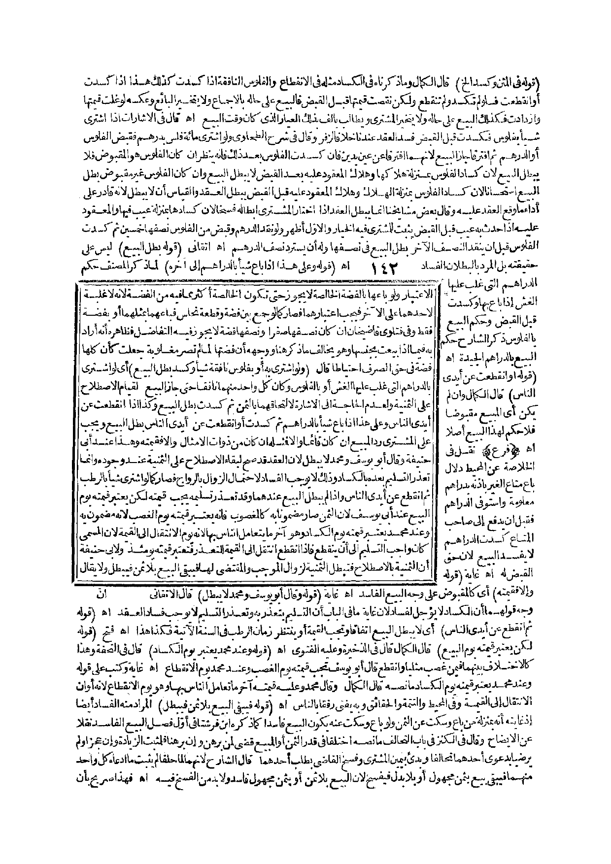 (قَوْلُهُ وَعَلَى هَذَا إذَا بَاعَ شَيْئًا بِالدَّرَاهِمِ إلَى آخِرِهِ) لَمَّا ذَكَرَ الْمُصَنِّفُ حُكْمَ الدَّرَاهِمِ الَّتِي غَلَبَ عَلَيْهَا الْغِشُّ إذَا بَاعَ بِهَا وَكَسَدَتْ قَبْلَ الْقَبْضِ وَحُكْمَ الْبَيْعِ بِالْفُلُوسِ ذَكَرَ الشَّارِحُ حُكْمَ الْبَيْعِ بِالدَّرَاهِمِ الْجَيِّدَةِ اهـ.