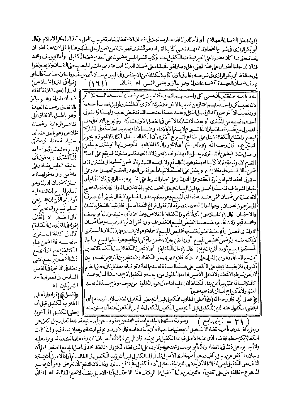 (فَصْلٌ) (قَوْلُهُ: وَلَوْ أَعْطَى الْمَطْلُوبُ الْكَفِيلَ قَبْلَ أَنْ يُعْطِيَ الْكَفِيلُ إلَى آخِرِهِ) وَصُورَةُ الْمَسْأَلَةِ فِي الْجَامِعِ الصَّغِيرِ مُحَمَّدٌ عَنْ يَعْقُوبَ عَنْ أَبِي حَنِيفَةَ - رَحِمَهُ اللَّهُ - فِي رَجُلٍ كَفَلَ عَنْ رَجُلٍ بِأَلْفِ دِرْهَمٍ بِأَمْرِهِ فَقَضَاهُ الْأَلْفَ قَبْلَ أَنْ يُعْطِيَهَا صَاحِبَهَا أَلَهُ أَنْ يَأْخُذَهَا مِنْهُ؟ قَالَ لَا وَإِنْ رَبِحَ فِيهَا رِبْحًا فَهُوَ لَهُ وَلَا يَتَصَدَّقُ بِهِ وَإِنْ كَانَتْ الْكَفَالَةُ بِكُرِّ حِنْطَةٍ فَقَضَاهُ الَّذِي عَلَيْهِ الْأَصْلُ فَبَاعَهُ الْكَفِيلُ فَرَبِحَ فِيهِ فَإِنَّ الرِّبْحَ لَهُ إلَّا أَنَّهُ أَحَبُّ إلَيَّ أَنْ يَدْفَعَهُ إلَى الَّذِي قَضَاهُ وَيَرُدَّهُ عَلَيْهِ وَلَا أَجْبُرُهُ عَلَى ذَلِكَ فِي الْقَضَاءِ وَقَالَ أَبُو يُوسُفَ وَمُحَمَّدٌ هُوَ لَهُ وَلَا يَرُدُّهُ عَلَى الَّذِي قَضَاهُ الْكُرَّ. إلَى هُنَا لَفْظُ مُحَمَّدٍ فِي أَصْلِ الْجَامِعِ الصَّغِيرِ اعْلَمْ أَنَّ رَجُلًا إذَا كَفَلَ عَنْ رَجُلٍ بِأَلْفِ دِرْهَمٍ بِأَمْرِهِ فَأَدَّى الْأَصِيلُ الْمَالَ إلَى الْكَفِيلِ قَبْلَ أَنْ يُؤَدِّيَهُ الْكَفِيلُ إلَى الطَّالِبِ ثُمَّ أَرَادَ الْأَصِيلُ أَنْ يَسْتَرِدَّ الْأَلْفَ مِنْ الْكَفِيلِ لَيْسَ لَهُ ذَلِكَ إلَّا أَنْ يَقْضِيَ الدَّيْنَ بِنَفْسِهِ قَبْلَ أَدَاءِ الْكَفِيلِ فَحِينَئِذٍ يَسْتَرِدُّ؛ وَذَلِكَ لِأَنَّ الدَّفْعَ كَانَ لِغَرَضٍ وَهُوَ أَنْ يَصِيرَ الْمَدْفُوعُ حَقًّا لِلْقَابِضِ عَلَى تَقْدِيرِ أَدَاءِ الدَّيْنِ مِنْ مَالِ الْكَفِيلِ فَلَمَّا لَمْ يَنْتَفِ هَذَا الِاحْتِمَالُ بِأَدَاءِ الْأَصِيلِ بِنَفْسِهِ لَا تَصِحُّ الْمُطَالَبَةُ اهـ. أَتْقَانِيٌّ.