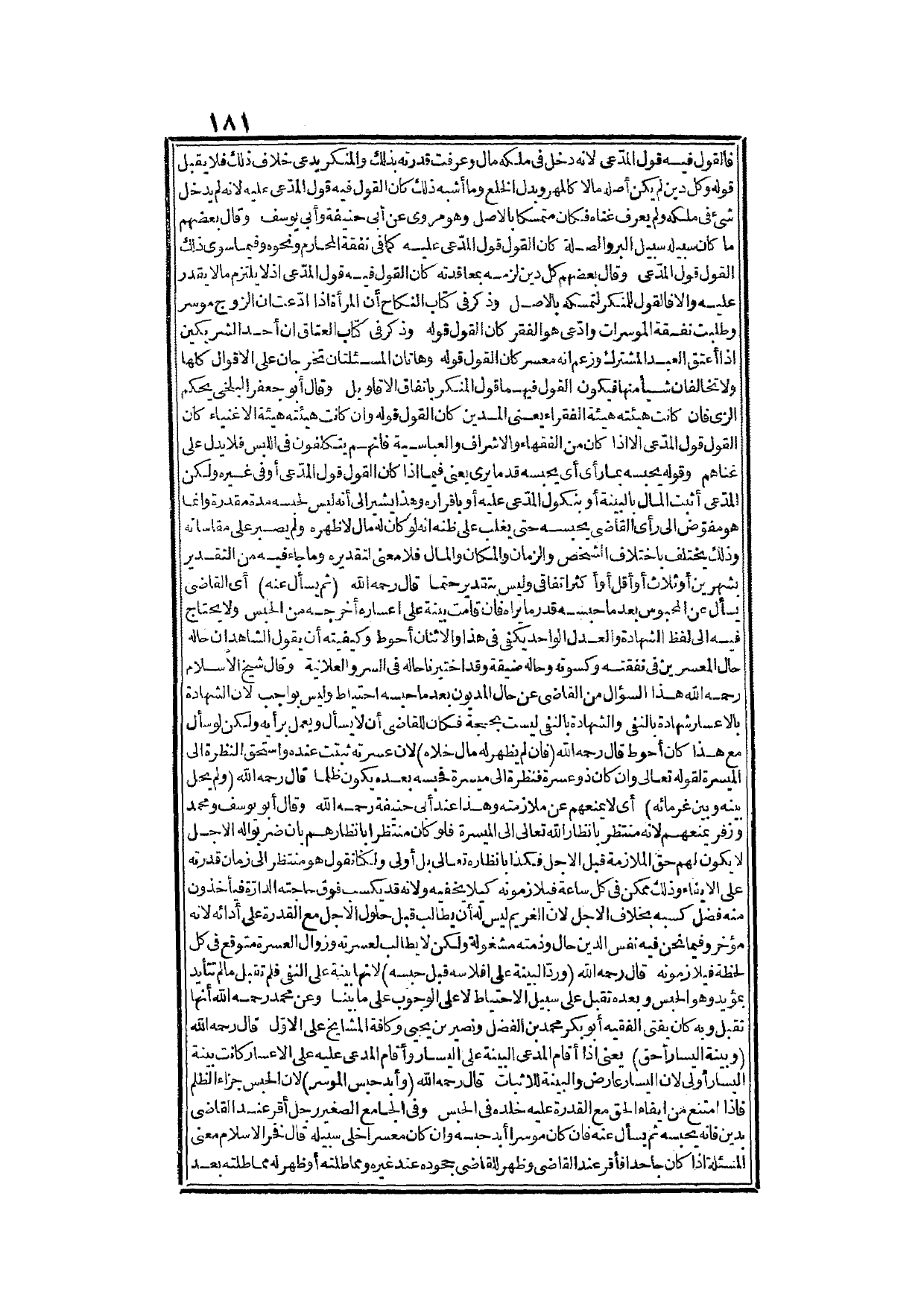فَالْقَوْلُ فِيهِ قَوْلُ الْمُدَّعِي لِأَنَّهُ دَخَلَ فِي مِلْكِهِ مَالٌ وَعُرِفَتْ قُدْرَتُهُ بِذَلِكَ وَالْمُنْكِرُ يَدَّعِي خِلَافَ ذَلِكَ، فَلَا يُقْبَلُ قَوْلُهُ وَكُلُّ دَيْنٍ لَمْ يَكُنْ أَصْلُهُ مَالًا كَالْمَهْرِ وَبَدَلِ الْخُلْعِ وَمَا أَشْبَهَ ذَلِكَ كَانَ الْقَوْلُ فِيهِ قَوْلَ الْمُدَّعَى عَلَيْهِ؛ لِأَنَّهُ لَمْ يَدْخُلْ شَيْءٌ فِي مِلْكِهِ وَلَمْ يُعْرَفْ غِنَاهُ فَكَانَ مُتَمَسَّكًا بِالْأَصْلِ وَهُوَ مَرْوِيٌّ عَنْ أَبِي حَنِيفَةَ وَأَبِي يُوسُفَ، وَقَالَ بَعْضُهُمْ مَا كَانَ سَبِيلُهُ سَبِيلَ الْبِرِّ وَالصِّلَةِ كَانَ الْقَوْلُ قَوْلَ الْمُدَّعَى عَلَيْهِ كَمَا فِي نَفَقَةِ الْمَحَارِمِ وَنَحْوِهِ وَفِيمَا سِوَى ذَلِكَ الْقَوْلُ قَوْلُ الْمُدَّعِي، وَقَالَ بَعْضُهُمْ كُلُّ دَيْنٍ لَزِمَهُ بِمُعَاقَدَتِهِ كَانَ الْقَوْلُ فِيهِ قَوْلَ الْمُدَّعِي إذْ لَا يَلْتَزِمُ مَا لَا يَقْدِرُ عَلَيْهِ وَإِلَّا فَالْقَوْلُ لِلْمُنْكِرِ لِتَمَسُّكِهِ بِالْأَصْلِ وَذَكَرَ فِي كِتَابِ النِّكَاحِ أَنَّ الْمَرْأَةَ إذَا ادَّعَتْ أَنَّ الزَّوْجَ مُوسِرٌ وَطَلَبَتْ نَفَقَةَ الْمُوسِرَاتِ وَادَّعَى هُوَ الْفَقْرَ كَانَ الْقَوْلُ قَوْلَهُ وَذَكَرَ فِي كِتَابِ الْعَتَاقِ أَنَّ أَحَدَ الشَّرِيكَيْنِ إذَا أَعْتَقَ الْعَبْدَ الْمُشْتَرَكَ وَزَعَمَ أَنَّهُ مُعْسِرٌ كَانَ الْقَوْلُ قَوْلَهُ وَهَاتَانِ الْمَسْأَلَتَانِ تَخْرُجَانِ عَلَى الْأَقْوَالِ كُلِّهَا، وَلَا تُخَالِفَانِ شَيْئًا مِنْهَا فَيَكُونُ الْقَوْلُ فِيهِمَا قَوْلَ الْمُنْكِرِ بِاتِّفَاقِ الْأَقَاوِيلِ، وَقَالَ أَبُو جَعْفَرٍ الْبَلْخِيّ يَحْكُمُ الزِّيُّ فَإِذَا كَانَتْ هَيْئَتُهُ هَيْئَةَ الْفُقَرَاءِ يَعْنِي الْمَدِينَ كَانَ الْقَوْلُ قَوْلَهُ، وَإِنْ كَانَتْ هَيْئَتُهُ هَيْئَةَ الْأَغْنِيَاءِ كَانَ الْقَوْلُ قَوْلَ الْمُدَّعِي إلَّا إذَا كَانَ مِنْ الْفُقَهَاءِ وَالْأَشْرَافِ وَالْعَبَّاسِيَّةِ فَإِنَّهُمْ يَتَكَلَّفُونَ فِي اللُّبْسِ، فَلَا يَدُلُّ عَلَى غِنَاهُمْ وَقَوْلُهُ يَحْبِسُهُ بِمَا رَأَى أَيْ يَحْبِسُهُ قَدْرَ مَا يَرَى يَعْنِي فِيمَا إذَا كَانَ الْقَوْلُ قَوْلَ الْمُدَّعِي أَوْ فِي غَيْرِهِ، وَلَكِنَّ الْمُدَّعِيَ أَثْبَتَ الْمَالَ بِالْبَيِّنَةِ أَوْ بِنُكُولِ الْمُدَّعَى عَلَيْهِ أَوْ بِإِقْرَارِهِ وَهَذَا يُشِيرُ إلَى أَنَّهُ لَيْسَ لِحَبْسِهِ مُدَّةً مُقَدَّرَةً وَإِنَّمَا هُوَ مُفَوَّضٌ إلَى رَأْيِ الْقَاضِي يَحْبِسُهُ حَتَّى يَغْلِبَ عَلَى ظَنِّهِ أَنَّهُ لَوْ كَانَ لَهُ مَالٌ لَأَظْهَرَهُ وَلَمْ يَصْبِر عَلَى مُقَاسَاتِهِ وَذَلِكَ يَخْتَلِفُ بِاخْتِلَافِ الشَّخْصِ وَالزَّمَانِ وَالْمَكَانِ وَالْمَالِ، فَلَا مَعْنَى لِتَقْدِيرِهِ وَمَا جَاءَ فِيهِ مِنْ التَّقْدِيرِ بِشَهْرَيْنِ أَوْ ثَلَاثٍ أَوْ أَقَلَّ أَوْ أَكْثَرَ اتِّفَاقِيٌّ وَلَيْسَ بِتَقْدِيرٍ حَتْمًا.