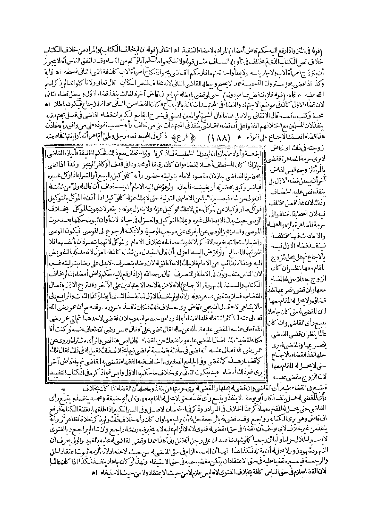 (فَرْعٌ) ذَكَرَهُ فِي الْمُحِيطِ نَصُّهُ رَجُلٌ وَطِئَ أُمَّ امْرَأَتِهِ أَوْ ابْنَتَهَا فَخَاصَمَتْهُ زَوْجَتُهُ فِي ذَلِكَ إلَى قَاضٍ لَا يَرَى حُرْمَةَ الْمُصَاهَرَةِ فَقَضَى بِالْمَرْأَةِ لِزَوْجِهَا لَيْسَ لِقَاضٍ آخَرَ أَنْ يُبْطِلَ قَضَاءَ الْأَوَّلِ، بَلْ يُنْفِذُهُ نَصَّ عَلَيْهِ الْخَصَّافُ وَذَلِكَ لِأَنَّ هَذَا فَصْلٌ مُخْتَلَفٌ فِيهِ لِأَنَّ الصَّحَابَةَ اخْتَلَفُوا فِي حُرْمَةِ الْمُصَاهَرَةِ بِالزِّنَا، وَالْعُلَمَاءُ وَالْأَحَادِيثُ فِيهَا مُخْتَلِفَةٌ فَيَنْفُذُ قَضَاءُ الْأَوَّلِ فِيهِ بِالْإِجْمَاعِ، ثُمَّ هَلْ يَحِلُّ لِلزَّوْجِ الْمُقَامُ مَعَهَا؟ يُنْظَرُ إنْ كَانَ الزَّوْجُ جَاهِلًا حَلَّ لَهُ الْمُقَامُ مَعَهَا وَإِنْ قَضَى بِتَحْرِيمِهَا نَفَذَ قَضَاؤُهُ وَلَا يَحِلُّ لَهُ الْمُقَامُ مَعَهَا؛ لِأَنَّ الْمَقْضِيَّ لَهُ مَتَى كَانَ جَاهِلًا يَتْبَعُ رَأْيَ الْقَاضِي وَإِنْ كَانَ عَالِمًا يُنْظَرُ إنْ قَضَى الْقَاضِي بِتَحْرِيمِهَا وَالْمَقْضِيُّ لَهُ يَرَى حِلَّهَا نَفَذَ الْقَضَاءُ بِالْإِجْمَاعِ حَتَّى لَا يَحِلَّ لَهُ الْمُقَامُ مَعَهَا؛ لِأَنَّ الزَّوْجَ مَقْضِيٌّ عَلَيْهِ فَيَتْبَعُ فِي الْقَضَاءِ عَلَيْهِ رَأْيَ الْقَاضِي، وَإِنْ قَضَى لَهُ بِحِلِّهَا وَالْمَقْضِيُّ لَهُ يَرَى حُرْمَتَهَا هَلْ يَنْفُذُ؟ وَحَاصِلُهُ أَنَّ الْقَضَاءَ إذَا كَانَ بِخِلَافِ رَأْيِ الْمَقْضِيِّ لَهُ هَلْ يَنْفُذُ؟ قَالَ أَبُو يُوسُفَ لَا يَنْفُذُ وَيَتْبَعُ رَأْيَ نَفْسِهِ حَتَّى لَا يَحِلَّ لَهُ الْمَقَامُ مَعَهَا وَقَالَ أَبُو حَنِيفَةَ وَمُحَمَّدٌ يَنْفُذُ وَيَتْبَعُ رَأْيَ الْقَاضِي حَتَّى يَحِلَّ لَهُ الْمُقَامُ مَعَهَا.