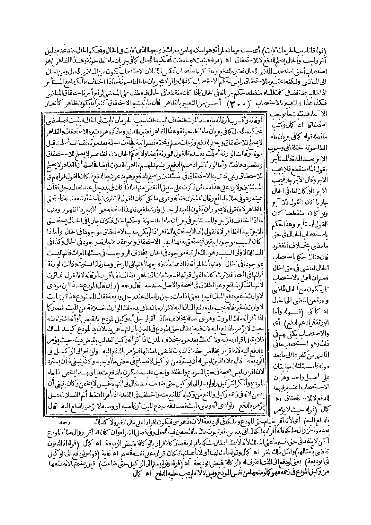 ـــــــــــــــــــــــــــــQقَوْلُهُ قُلْنَا سَبَبُ الْحِرْمَانِ ثَابِتٌ) أَيْ سَبَبُ حِرْمَانِ الْمَرْأَةِ، وَهُوَ إسْلَامُهَا مِنْ مِيرَاثِ زَوْجِهَا الذِّمِّيِّ ثَابِتٌ فِي الْحَالِ وَتُحَكَّمُ الْحَالُ عِنْدَ عَدَمِ دَلِيلٍ آخَرَ وَاجِبٍ، وَالْحَالُ يَصْلُحُ لِلدَّفْعِ لَا لِلِاسْتِحْقَاقِ اهـ (قَوْلُهُ فَيَثْبُتُ فِيمَا مَضَى تَحْكِيمًا لِلْحَالِ كَمَا فِي جَرَيَانِ مَاءِ الطَّاحُونَةِ، وَهَذَا الظَّاهِرُ) هُوَ اسْتِصْحَابٌ أَعْنِي اسْتِصْحَابَ الْمَاضِي لِلْحَالِ نَعْتَبِرُهُ لِلدَّفْعِ وَمَا ذَكَرَهُ اسْتِصْحَابٌ عَكْسُ ذَلِكَ؛ لِأَنَّ الِاسْتِصْحَابَ يَكُونُ مِنْ الْمَاضِي لِلْحَالِ وَمِنْ الْحَالِ إلَى الْمَاضِي، وَلَكِنَّهُ اعْتَبَرَهُ لِلِاسْتِحْقَاقِ وَلَيْسَ حُكْمُ الِاسْتِصْحَابِ كَذَلِكَ، وَالْمُرَادُ بِجَرَيَانِ مَاءِ الطَّاحُونَةِ مَا إذَا اخْتَلَفَ مَالِكُهَا مَعَ الْمُسْتَأْجِرِ إذَا طَالَبَهُ بِمُدَّةٍ فَقَالَ كَانَ الْمَاءُ مُنْقَطِعًا حُكْمُ جَرَيَانِهِ فِي الْحَالِ، فَإِذَا كَانَ مُنْقَطِعًا فِي الْحَالِ فَيُعْطَفُ عَلَى الْمَاضِي لِرَفْعِ أُجْرَةِ اسْتِحْقَاقِ الْمَاضِي فَكَذَا هَذَا وَالتَّعْبِيرُ بِالِاسْتِصْحَابِ أَحْسَنُ مِنْ التَّعْبِيرِ بِالظَّاهِرِ، فَإِنْ مَا يَثْبُتُ بِهِ الِاسْتِحْقَاقُ كَثِيرًا مَا يَكُونُ ظَاهِرًا كَأَخْبَارِ الْآحَادِ قَدْ تُثْبِتُ مَا يُوجِبُ اسْتِحْقَاقًا. اهـ. كَمَالٌ وَكَتَبَ مَا نَصُّهُ قَوْلُهُ كَمَا فِي جَرَيَانِ مَاءِ الطَّاحُونَةِ اخْتَلَفَا فِي وُجُوبِ الْأَجْرِ بَعْدَ الْمُدَّةِ فَالْمُسْتَأْجِرُ يَقُولُ الْمَاءُ مُنْقَطِعٌ، فَلَا يَجِبُ الْأَجْرُ وَقَالَ الْآجِرُ جَارٍ فَيَجِبُ الْأَجْرُ فَلَوْ كَانَ الْمَاءُ فِي الْحَالِ جَارِيًا كَانَ الْقَوْلُ لِلْآجِرِ، وَلَوْ كَانَ مُنْقَطِعًا كَانَ الْقَوْلُ لِلْمُسْتَأْجِرِ، وَهَذَا حُكْمٌ بِاسْتِصْحَابِ الْحَالِ فِي حَقِّ مَا مَضَى بِخِلَافِ الْمَفْقُودِ فَإِنَّ هُنَاكَ حُكْمًا بِاسْتِصْحَابِ الْحَالِ الْمَاضِي فِي حَقِّ الْحَالِ فَعُلِمَ أَنَّ الْعَمَلَ بِالِاسْتِصْحَابِ تَارَةً يَكُونُ فِي الْحَالِ لِلْمَاضِي وَتَارَةً مِنْ الْمَاضِي إلَى الْحَالِ اهـ كَاكِيٌّ (قَوْلُهُ وَأَمَّا الْوَرَثَةُ فَمُرَادُهُمْ الدَّفْعُ) أَيْ وَالِاسْتِصْحَابُ يَكْفِي لَهُمْ فِي ذَلِكَ، وَهُوَ اسْتِصْحَابُ مَا فِي الْمَاضِي مِنْ كُفْرِهَا إلَى مَا بَعْدَ مَوْتِهِ فَالْمَسْأَلَتَانِ مَبْنِيَّتَانِ عَلَى أَصْلٍ وَاحِدٍ وَهُوَ أَنَّ الِاسْتِصْحَابَ اُعْتُبِرَ فِيهِمَا لِلدَّفْعِ لَا لِلِاسْتِحْقَاقِ اهـ كَمَالٌ.