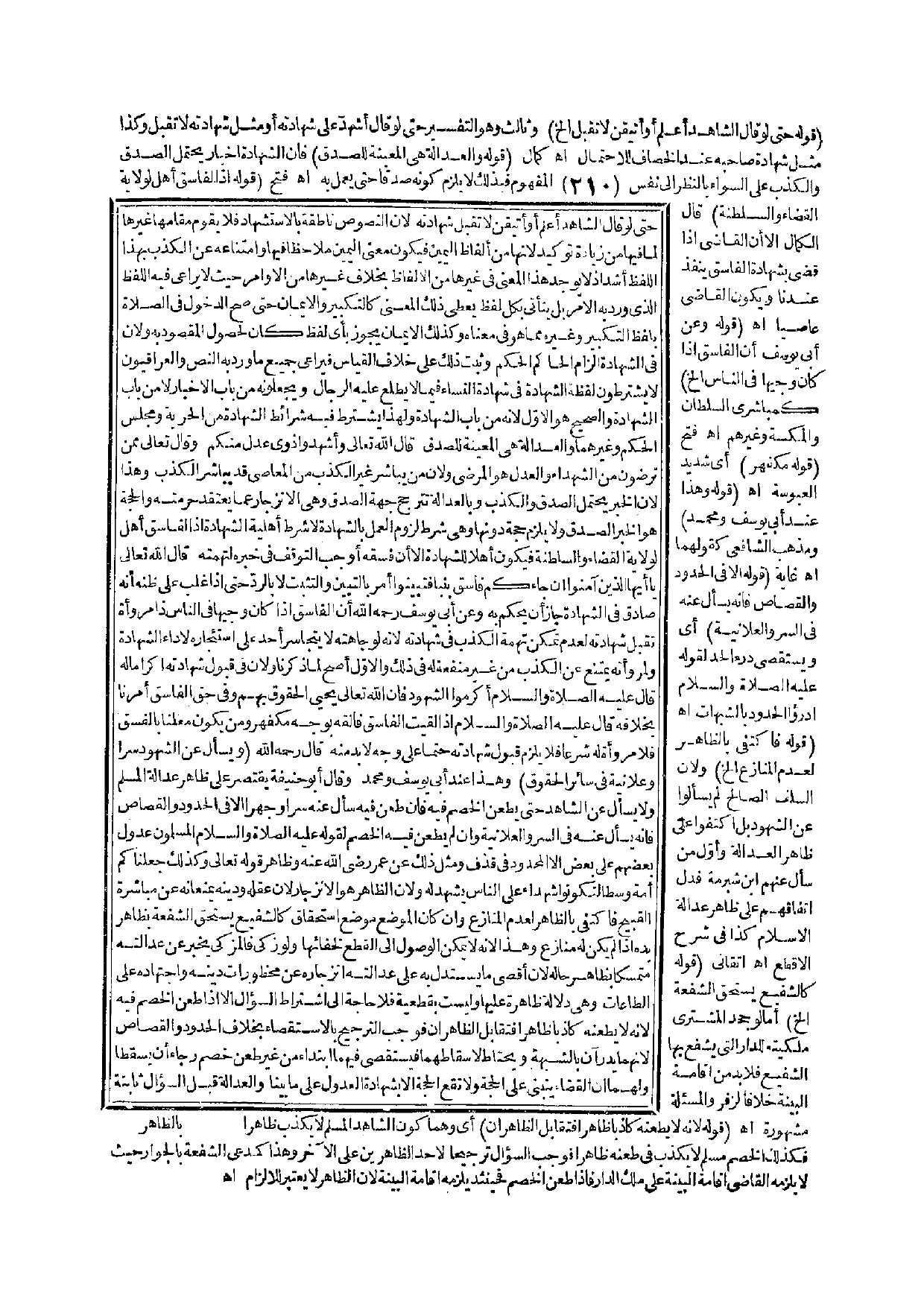 ـــــــــــــــــــــــــــــQقَوْلُهُ: حَتَّى لَوْ قَالَ الشَّاهِدُ: أَعْلَمُ أَوْ أَتَيَقَّنُ لَا تُقْبَلُ إلَخْ) وَثَالِثٌ وَهُوَ التَّفْسِيرُ حَتَّى لَوْ قَالَ أَشْهَدُ عَلَى شَهَادَتِهِ أَوْ مِثْلَ شَهَادَتِهِ لَا تُقْبَلُ وَكَذَا مِثْلُ شَهَادَةِ صَاحِبِهِ عِنْدَ الْخَصَّافِ لِلِاحْتِمَالِ. اهـ. كَمَالٌ (قَوْلُهُ: وَالْعَدَالَةُ هِيَ الْمُعِينَةُ لِلصِّدْقِ)، فَإِنَّ الشَّهَادَةَ إخْبَارٌ يَحْتَمِلُ الصِّدْقَ وَالْكَذِبَ عَلَى السَّوَاءِ بِالنَّظَرِ إلَى نَفْسِ الْمَفْهُومِ فَبِذَلِكَ لَا يَلْزَمُ كَوْنُهُ صِدْقًا حَتَّى يَعْمَلَ بِهِ. اهـ. فَتْحٌ (قَوْلُهُ: إذْ الْفَاسِقُ أَهْلٌ لِوِلَايَةِ الْقَضَاءِ وَالسَّلْطَنَةِ) قَالَ الْكَمَالُ إلَّا أَنَّ الْقَاضِيَ إذَا قَضَى بِشَهَادَةِ الْفَاسِقِ يَنْفُذُ عِنْدَنَا وَيَكُونُ الْقَاضِي عَاصِيًا. اهـ. (قَوْلُهُ: وَعَنْ أَبِي يُوسُفَ أَنَّ الْفَاسِقَ إذَا كَانَ وَجِيهًا فِي النَّاسِ إلَخْ) كَمُبَاشِرِي السُّلْطَانِ وَالْمَكَسَةِ وَغَيْرِهِمْ. اهـ. فَتْحٌ (قَوْلُهُ مُكْفَهِرٌّ) أَيْ شَدِيدُ الْعُبُوسَةِ. اهـ.