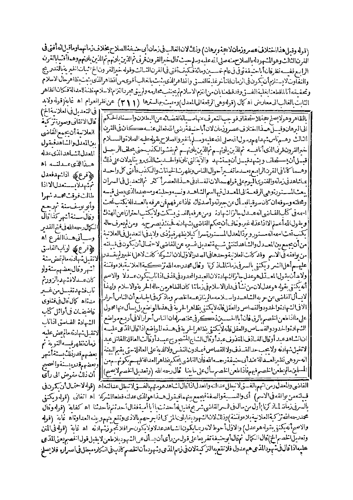 ـــــــــــــــــــــــــــــQقَوْلُهُ وَقِيلَ هَذَا اخْتِلَافُ عَصْرٍ وَزَمَانٍ لَا حُجَّةٌ وَبُرْهَانٌ) وَذَلِكَ؛ لِأَنَّ الْغَالِبَ فِي زَمَانِ أَبِي حَنِيفَةَ الصَّلَاحُ بِخِلَافِ زَمَانِهِمَا وَمَا قِيلَ إنَّهُ أَفْتَى فِي الْقَرْنِ الثَّالِثِ وَهُوَ الْمَشْهُودُ لَهُ بِالصَّلَاحِ مِنْهُ - صَلَّى اللَّهُ عَلَيْهِ وَسَلَّمَ - حَيْثُ قَالَ «خَيْرُ الْقُرُونِ قَرْنِي ثُمَّ الَّذِينَ يَلُونَهُمْ ثُمَّ الَّذِينَ يَلُونَهُمْ» وَهُمَا أَفْتَيَا بِالْقَرْنِ الرَّابِعِ فَفِيهِ نَظَرٌ، فَإِنَّ أَبَا حَنِيفَةَ تُوُفِّيَ فِي عَامِ خَمْسِينَ وَمِائَةٍ فَكَيْفَ أَفْتَى فِي الْقَرْنِ الثَّالِثِ