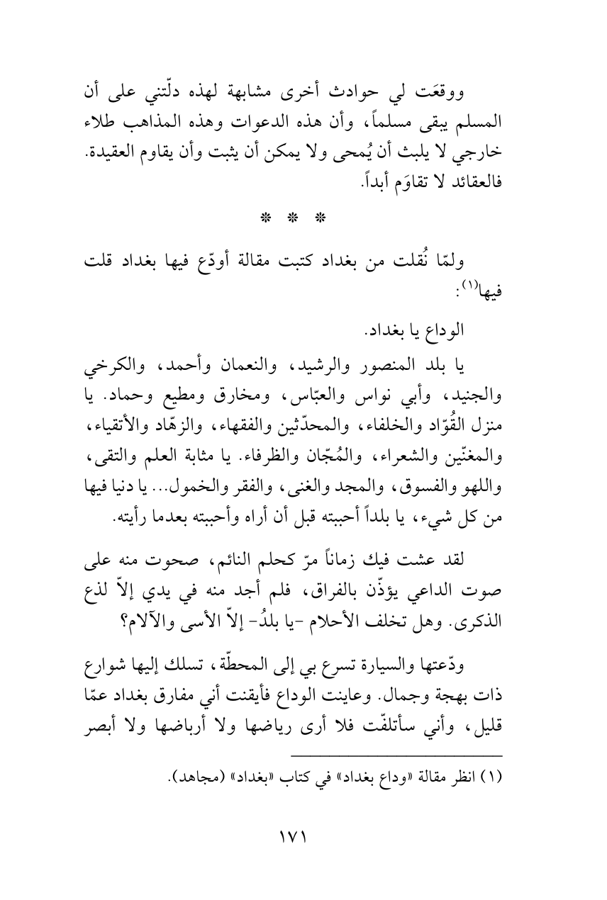 (¬1) انظر مقالة «وداع بغداد» في كتاب «بغداد» (مجاهد).