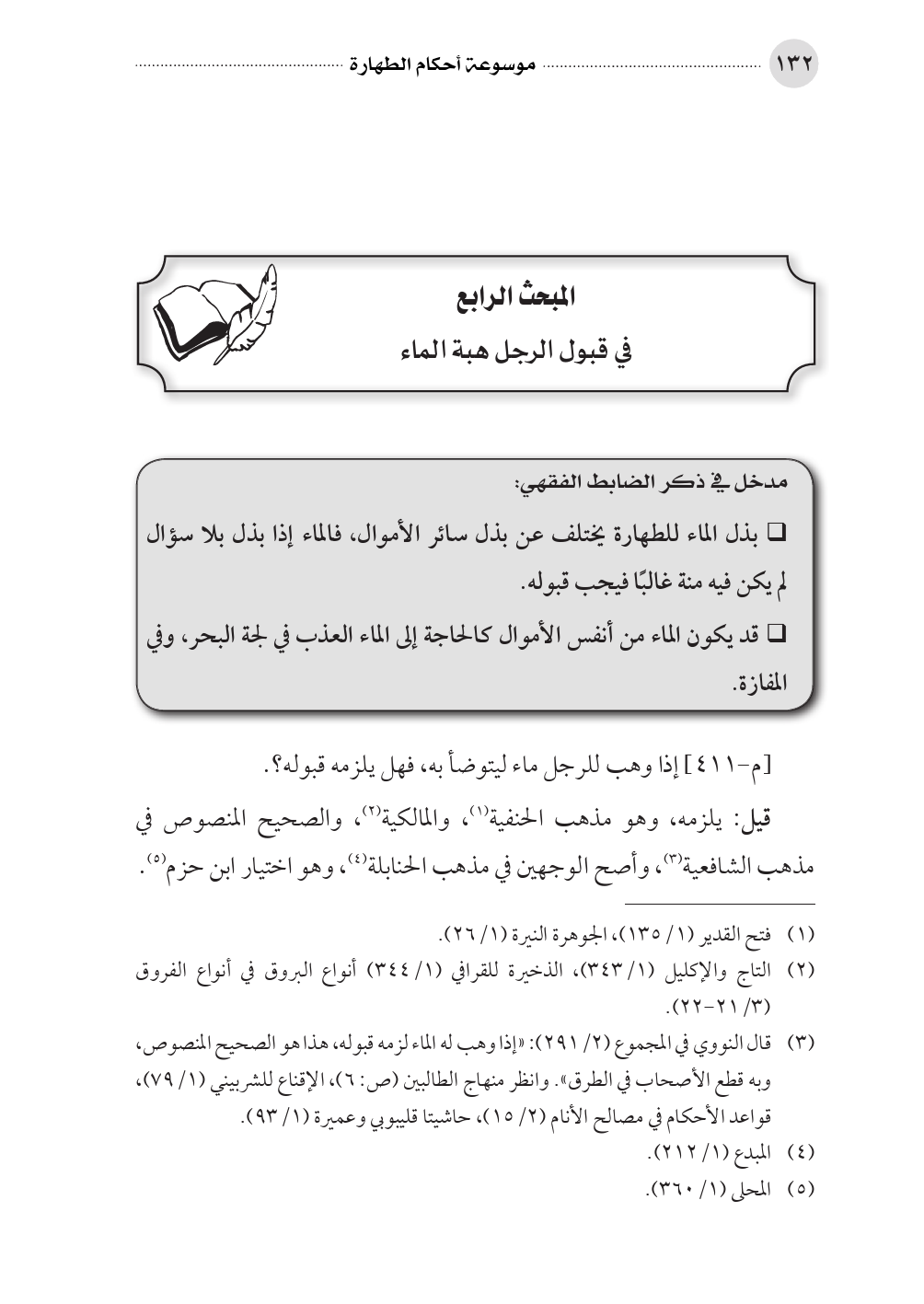 المبحث الرابع في قبول الرجل هبة الماء