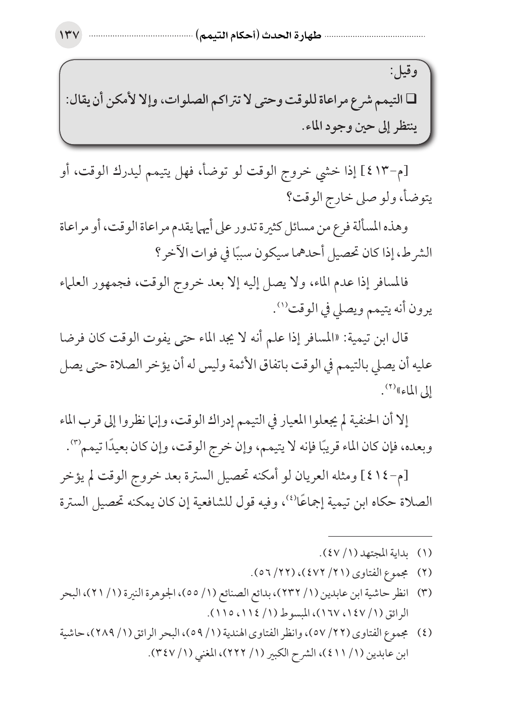 (¬٤) مجموع الفتاوى (٢٢/ ٥٧)، وانظر الفتاوى الهندية (١/ ٥٩)، البحر الرائق (١/ ٢٨٩)، حاشية ابن عابدين (١/ ٤١١)، الشرح الكبير (١/ ٢٢٢)، المغني (١/ ٣٤٧).