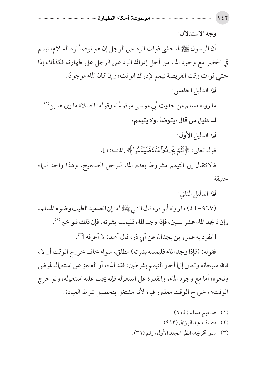 (٩٦٧ - ٤٤) ما رواه أبو ذر، قال النبي صلى الله عليه وسلم له: إن الصعيد الطيب وضوء المسلم، وإن لم يجد الماء عشر سنين، فإذا وجد الماء فليمسه بشرته، فإن ذلك لهو خير (¬٢).