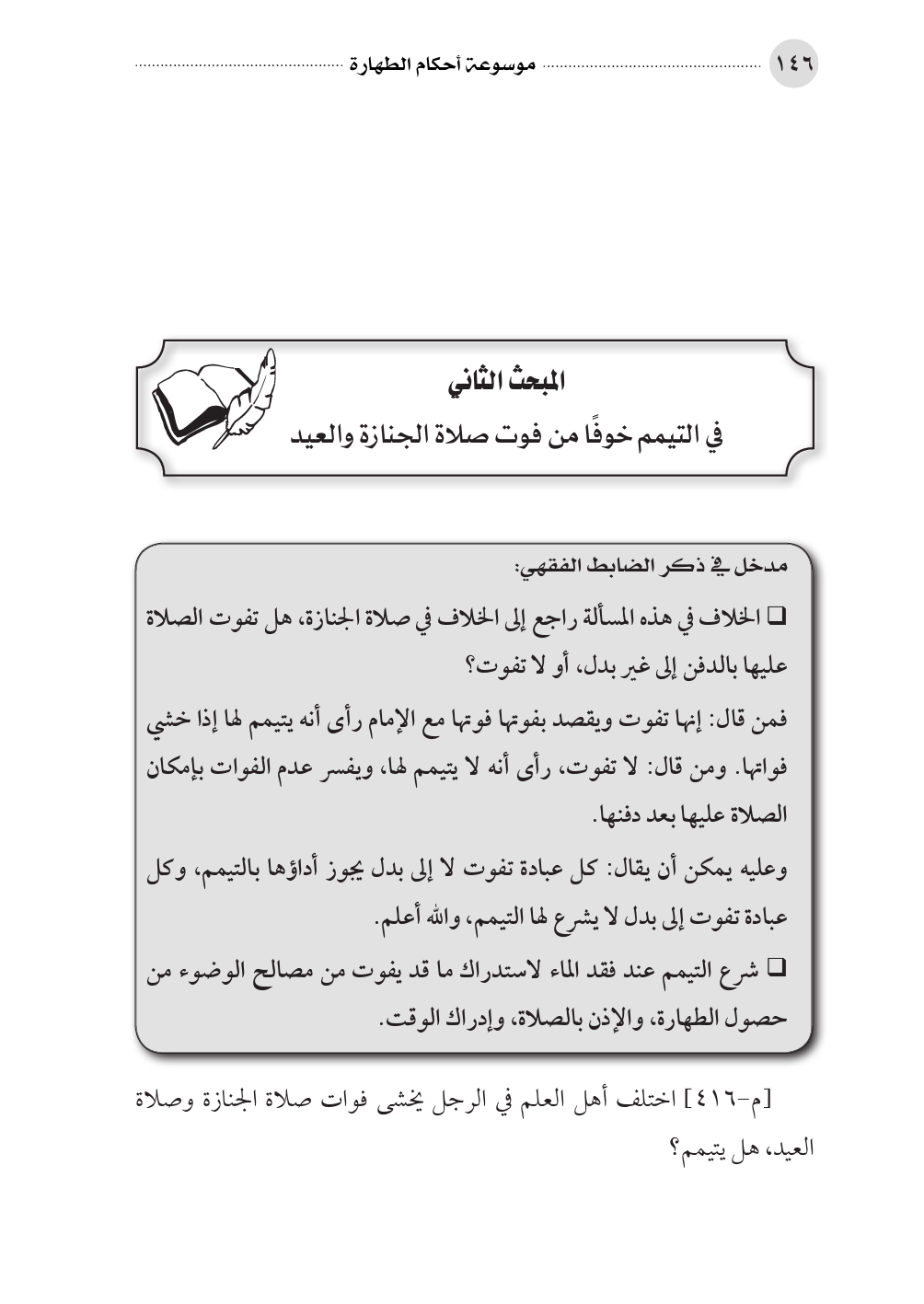 المبحث الثاني في التيمم خوفًا من فوت صلاة الجنازة والعيد
