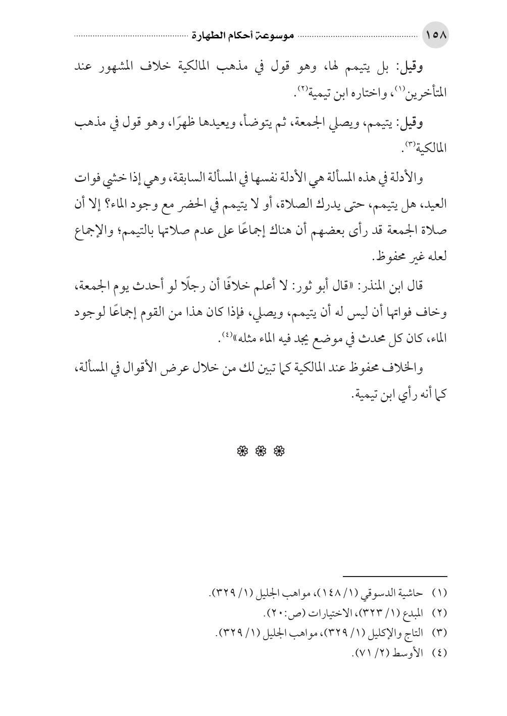 (¬١) حاشية الدسوقي (١/ ١٤٨)، مواهب الجليل (١/ ٣٢٩).