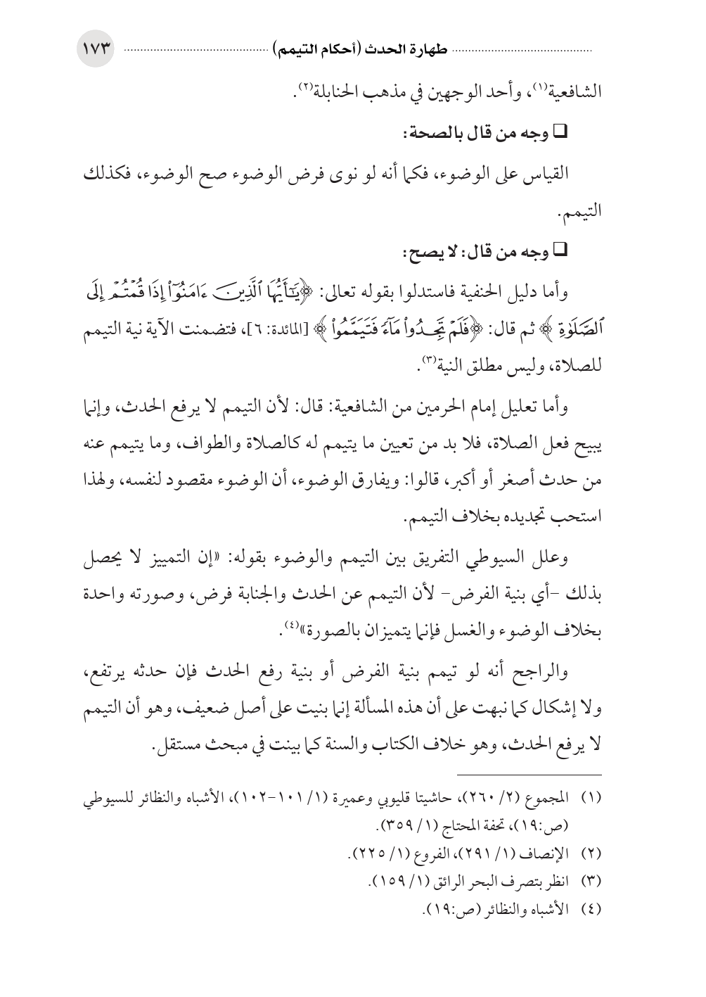 (¬١) المجموع (٢/ ٢٦٠)، حاشيتا قليوبي وعميرة (١/ ١٠١ - ١٠٢)، الأشباه والنظائر للسيوطي (ص: ١٩)، تحفة المحتاج (١/ ٣٥٩).