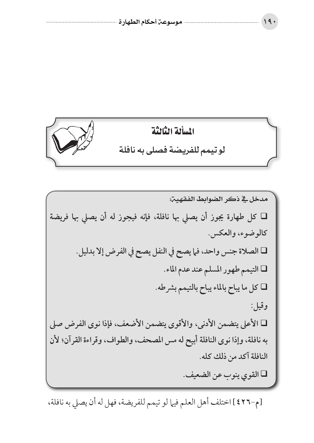 • كل طهارة يجوز أن يصلي بها نافلة، فإنه فيجوز له أن يصلي بها فريضة كالوضوء، والعكس.