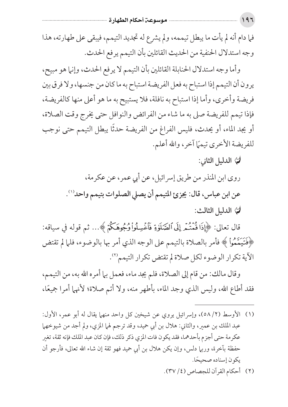وأما وجه استدلال الحنابلة القائلين بأن التيمم لا يرفع الحدث، وإنما هو مبيح، يرون أن التيمم إذا استباح به فعل الفريضة استباح به ما كان من جنسها، ولا فرق بين فريضة وأخرى، وأما إذا استباح به نافلة، فلا يستبيح به ما هو أعلى منها كالفريضة، فإذا تيمم للفريضة صلى به ما شاء من الفرائض والنوافل حتى يخرج وقت الصلاة، أو يجد الماء، أو يحدث، فليس الفراغ من الفريضة حدثًا يبطل التيمم حتى نوجب للفريضة الأخرى تيممًا آخر، والله أعلم.