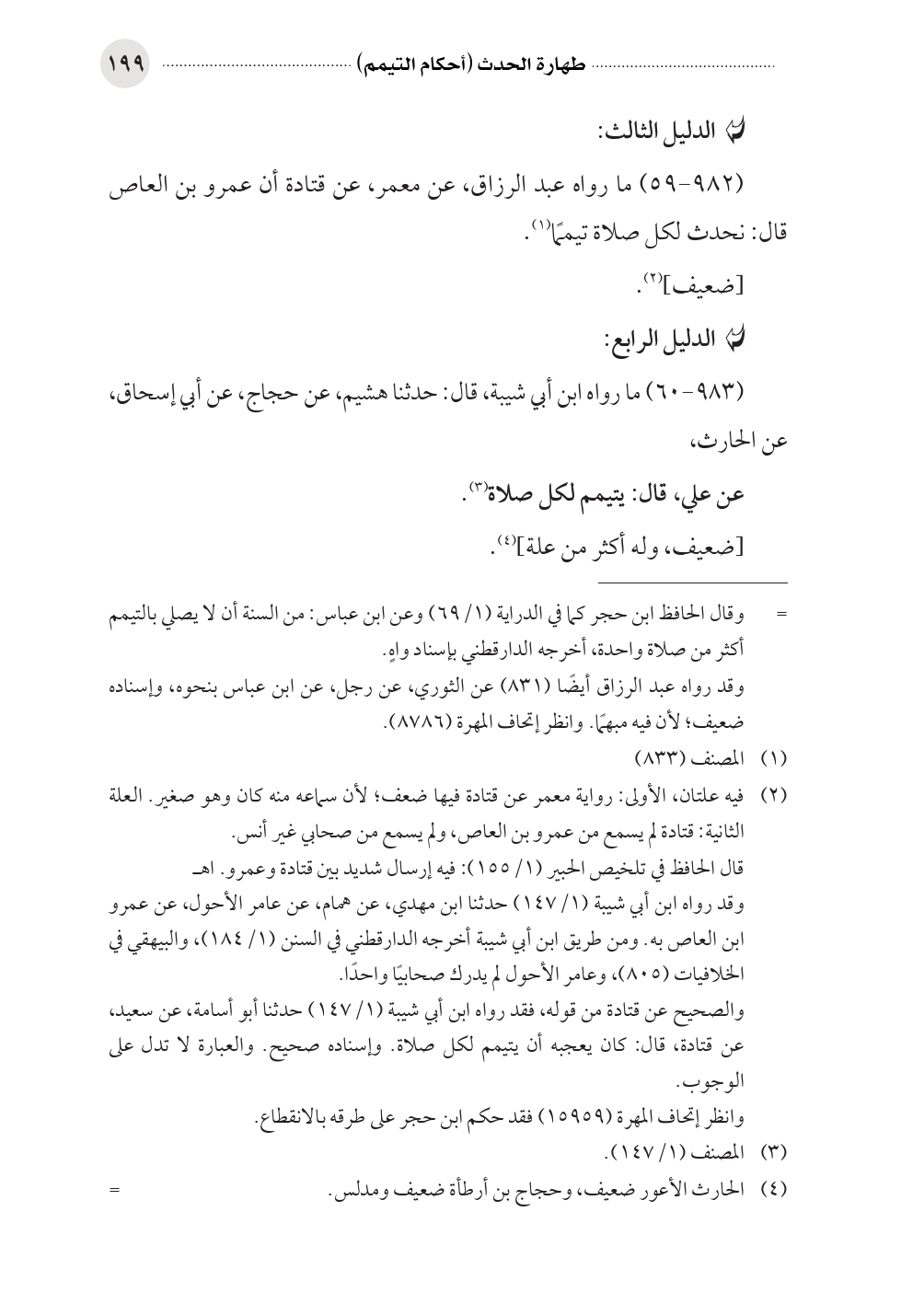 (٩٨٢ - ٥٩) ما رواه عبد الرزاق، عن معمر، عن قتادة أن عمرو بن العاص قال: نحدث لكل صلاة تيممًا (¬١).