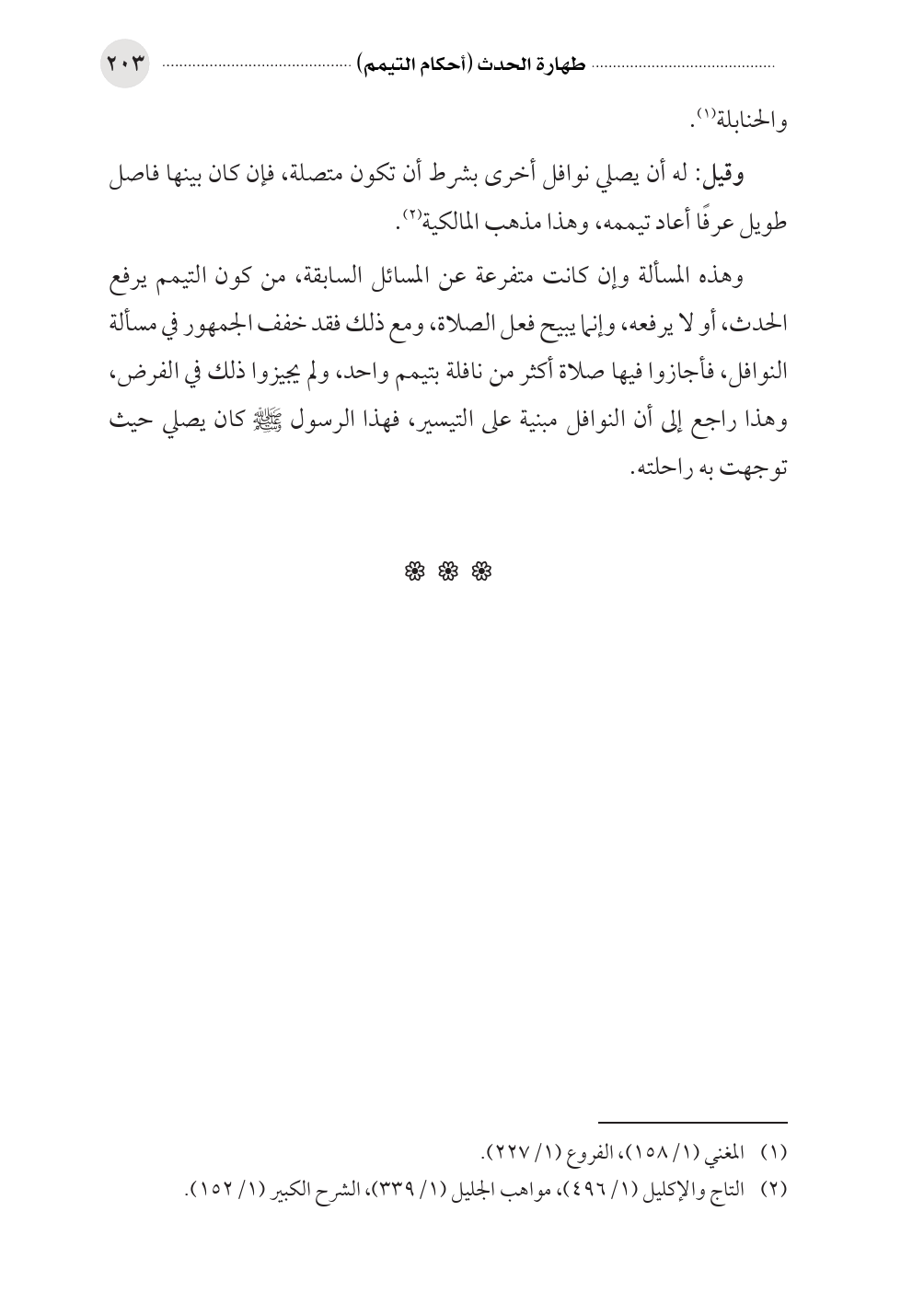 (¬٢) التاج والإكليل (١/ ٤٩٦)، مواهب الجليل (١/ ٣٣٩)، الشرح الكبير (١/ ١٥٢).